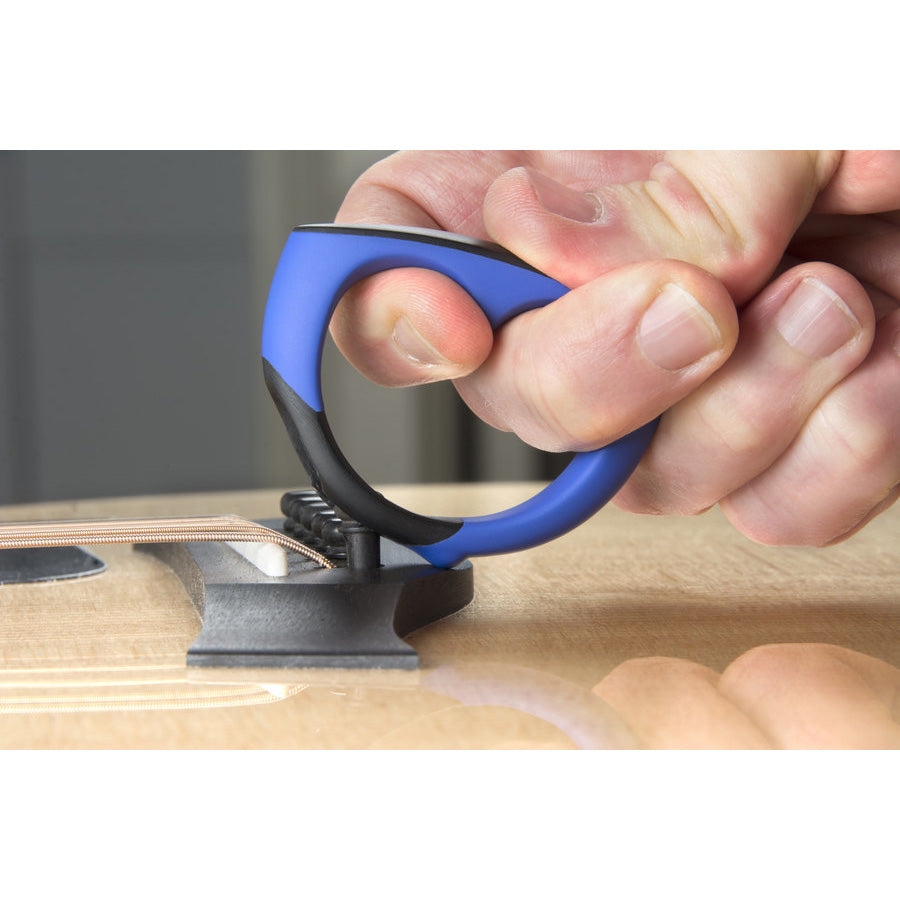 Pulling bridge pins just got a whole lot easier and safer. Music Nomad's patent pending innovative design allows you to easily pull bridge pins. Simply slide under the pin to GRIP and pull straight up. Or you can use a rocking motion to roll back and lift the pin. It’s that easy. The ergonomic, rubber lined comfort grip design has no moving parts and is a one-handed operation. Metal free construction with a rubber exterior means it's safe on delicate wood and all bridge pin types.