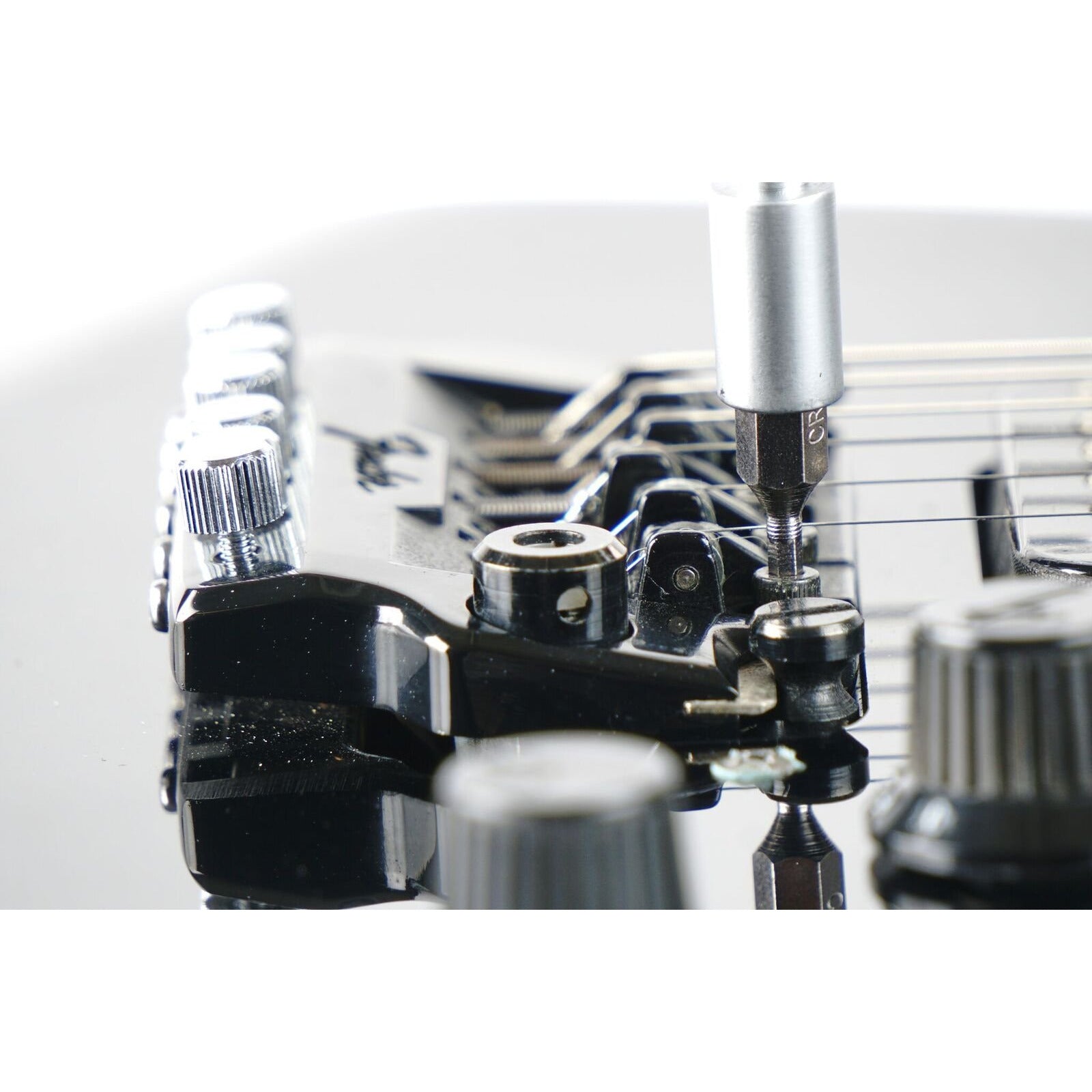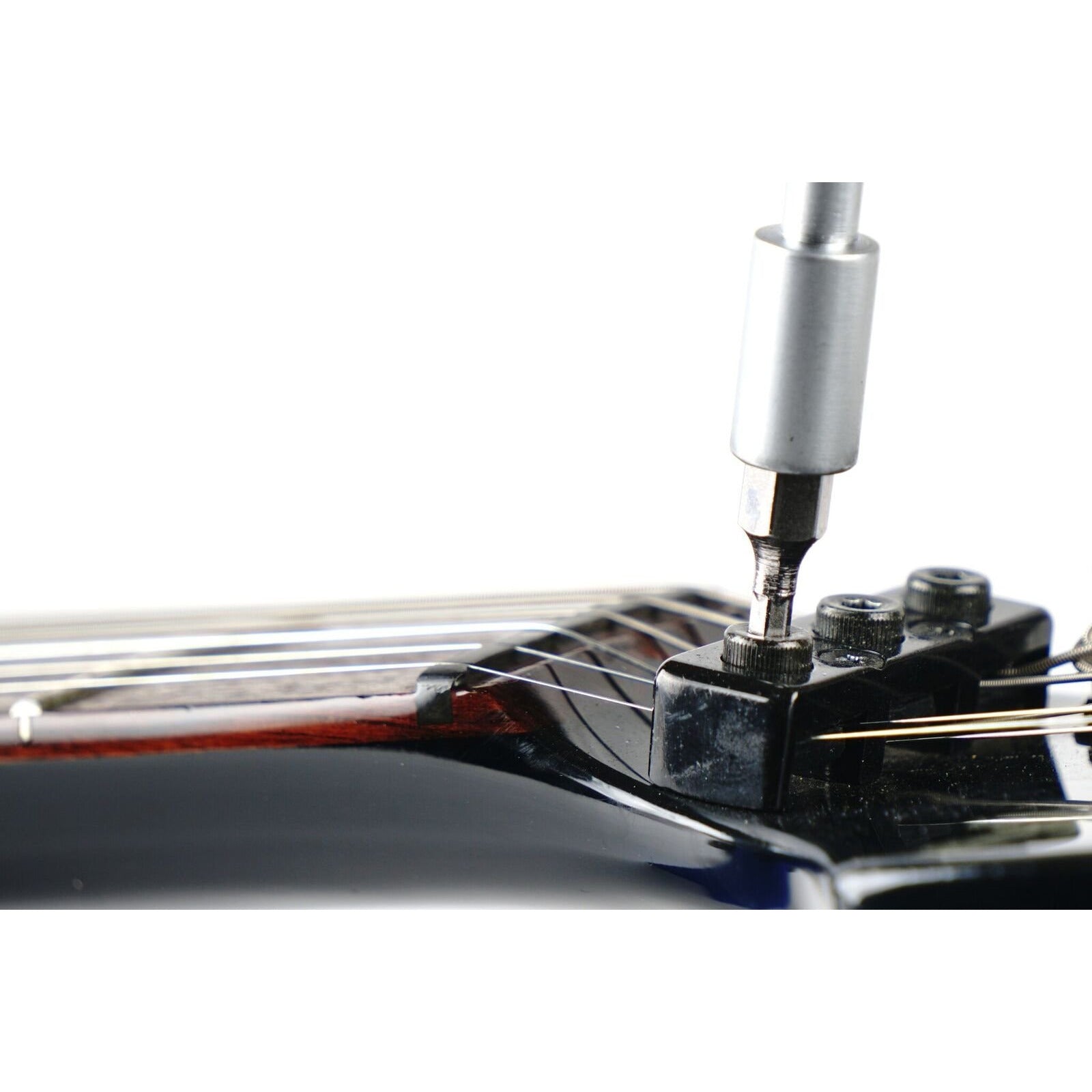 Forget lugging around a bag full of tools, the Octopus 17 'n 1 Tech Tool can handle everything. Perfect for tightening or loosening screws and hex nuts on bridges, saddles, locking nuts, output jacks, control pots, tuning machine bushings, lots more. The ergonomic handle is made from strong ballistic nylon that won't scratch or ding your hardware and is engineered with the most popular hex wrench sizes: 10mm, 12mm, 14mm, 1/2" & 7/16", plus a second 1/2" narrow profile hex wrench for tightening tough to reach sunken pots & tele cups. The universal adapter fits into the handle and features a 7th 1/4" hex wrench, which securely holds the 10pc screwdriver bit set. Includes Phillips & flat head bits along with 8 Allen key bits: .050", 1/16", 3/32", 1.5mm, 2.0mm, 2.5mm, 3.0mm, and 4.0mm. Tackles any job including precision adjustments to tremolo systems. A must have for every instrument case.