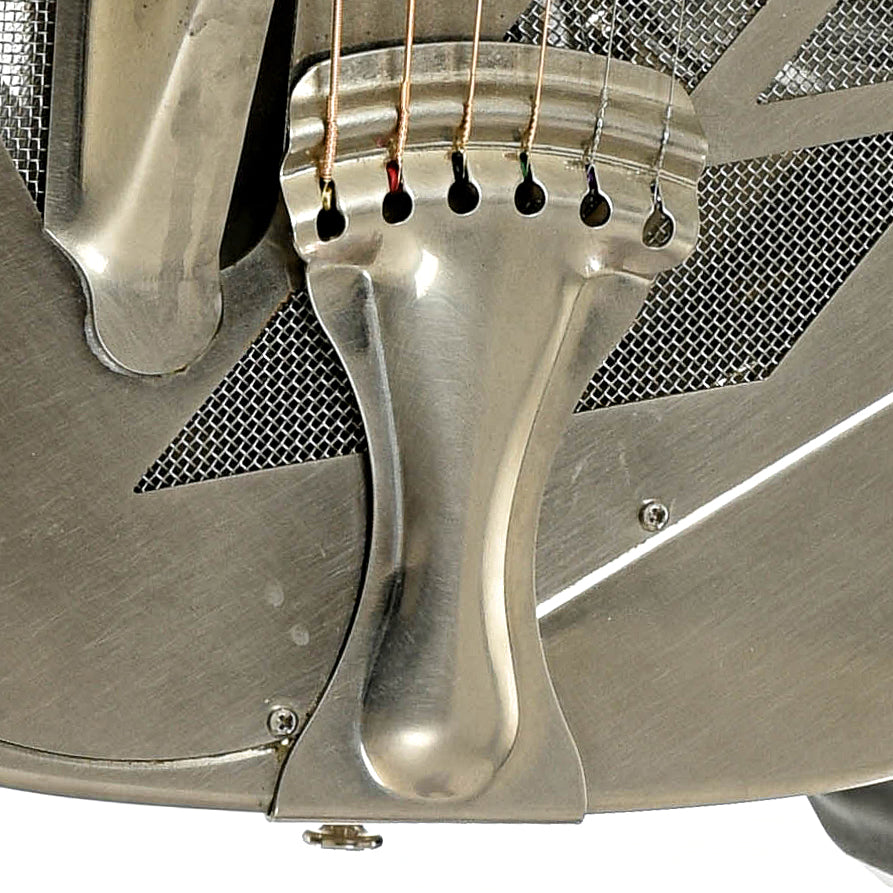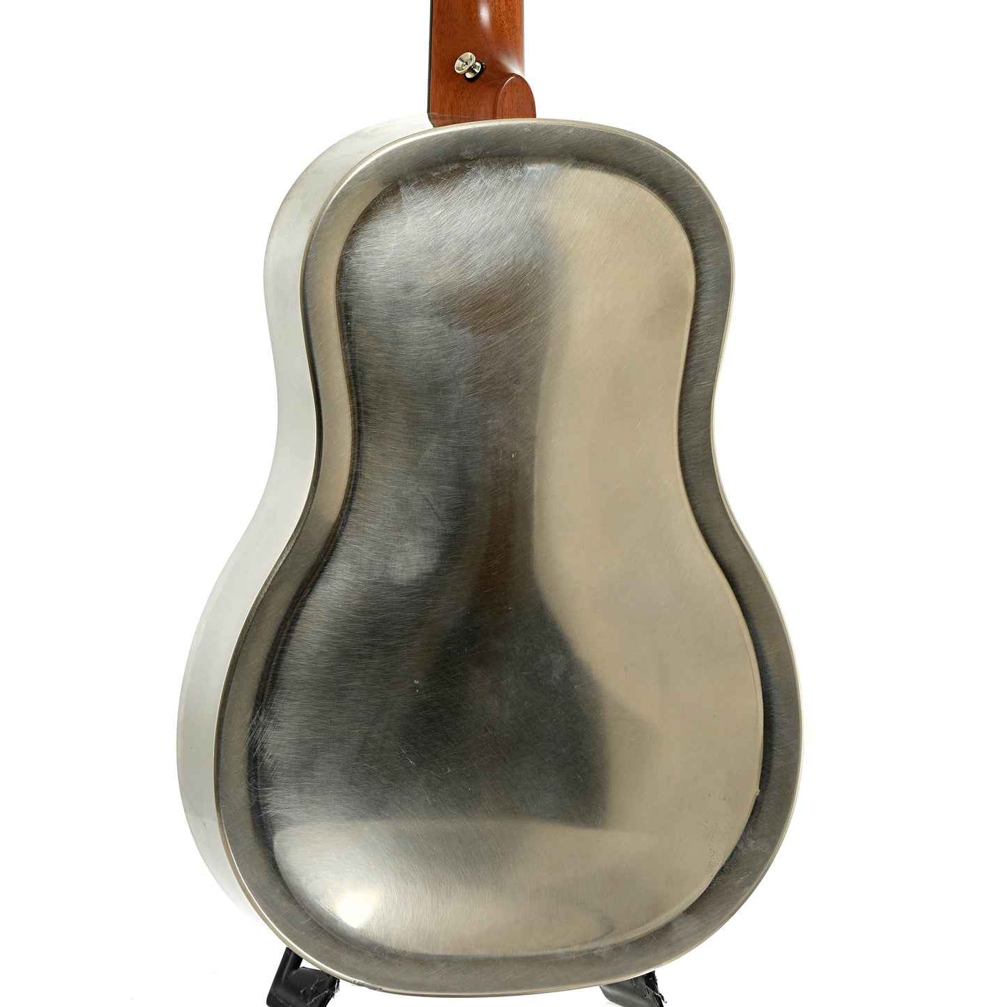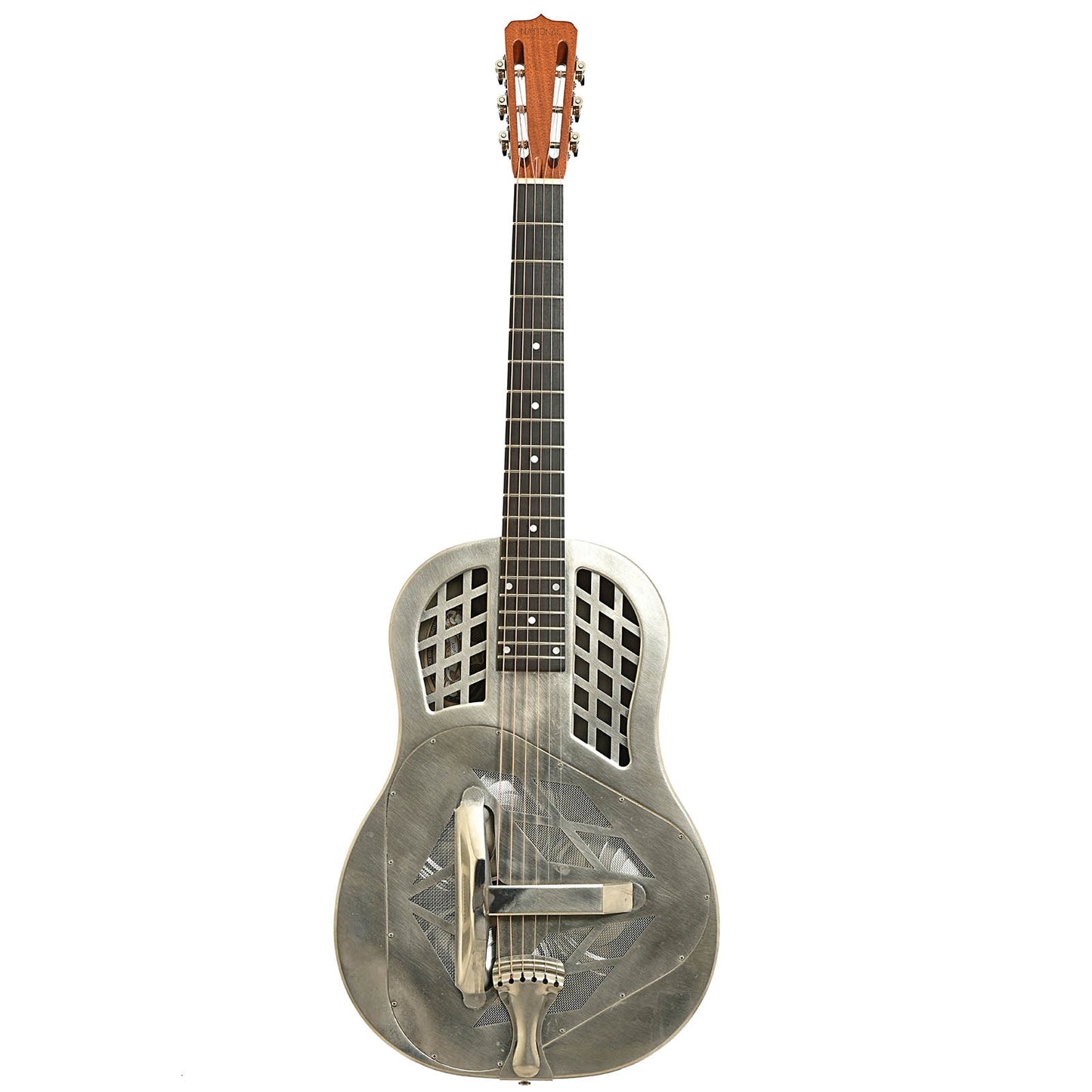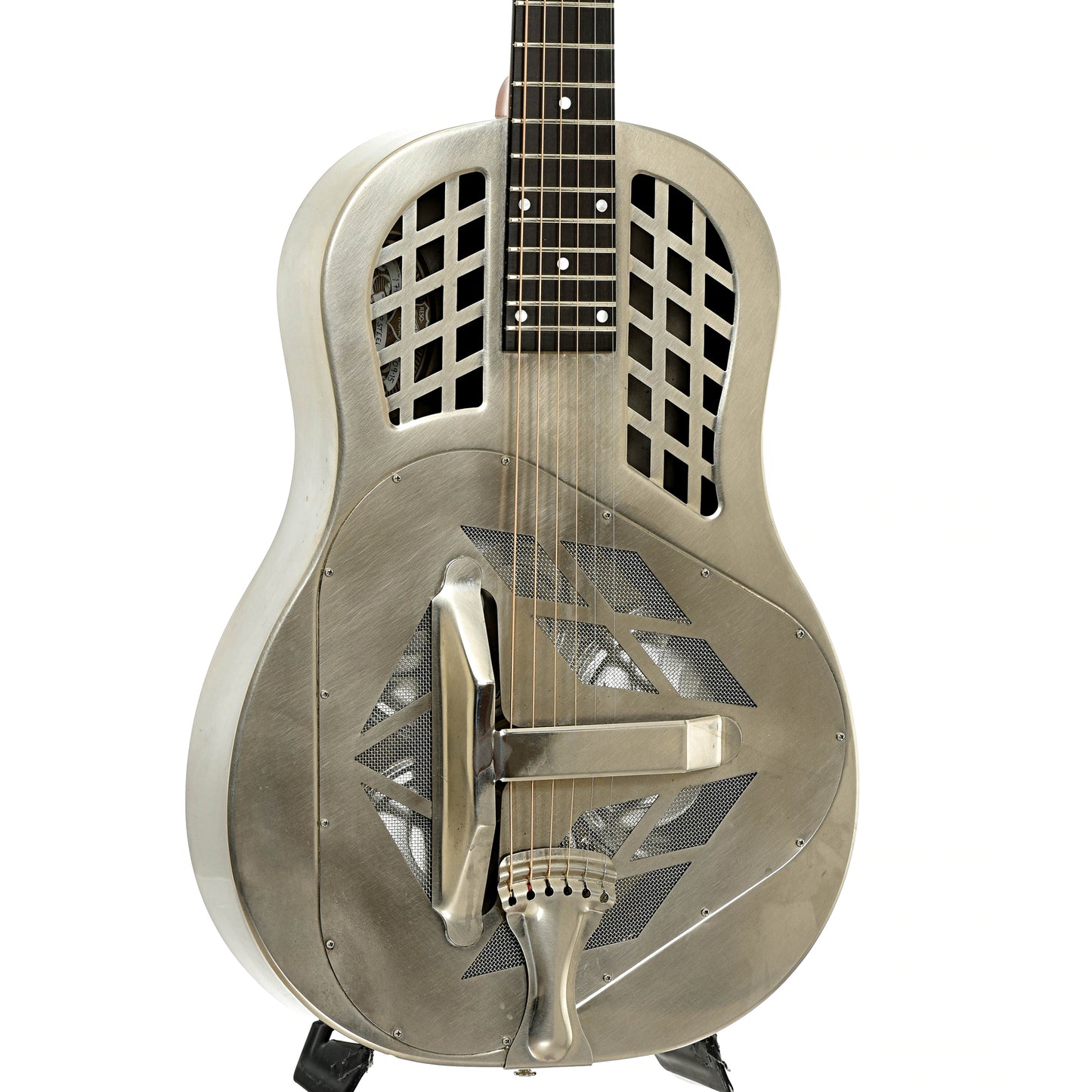 Play the blues with this excellent tricone resonator guitar by National, a storied name in American guitars. Features include a steel body, and ebony fingerboard on a 12-fret mahogany round neck, distinctive lattice soundholes, T-bar bridge, and 3 aluminum cones. Super tone! Original hard shell case. Made in USA. On consignment.