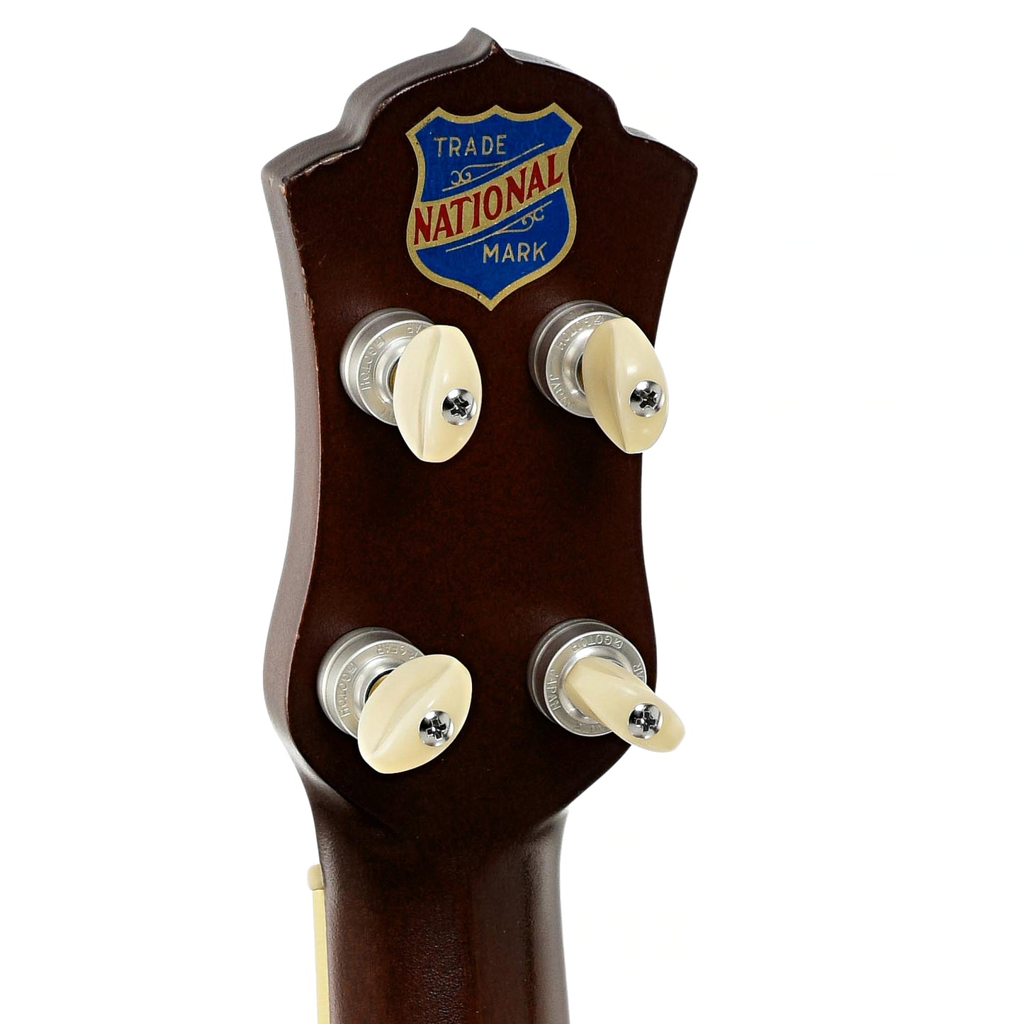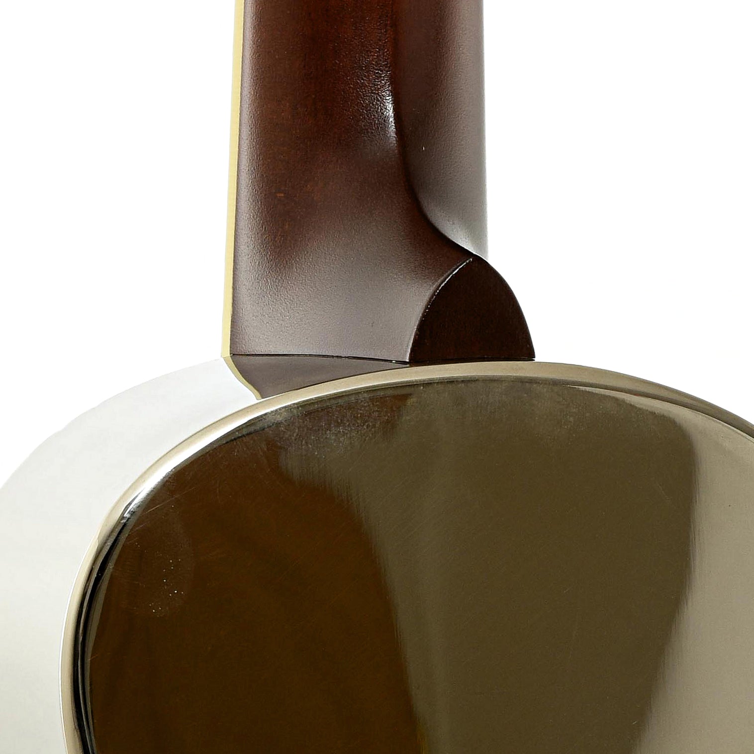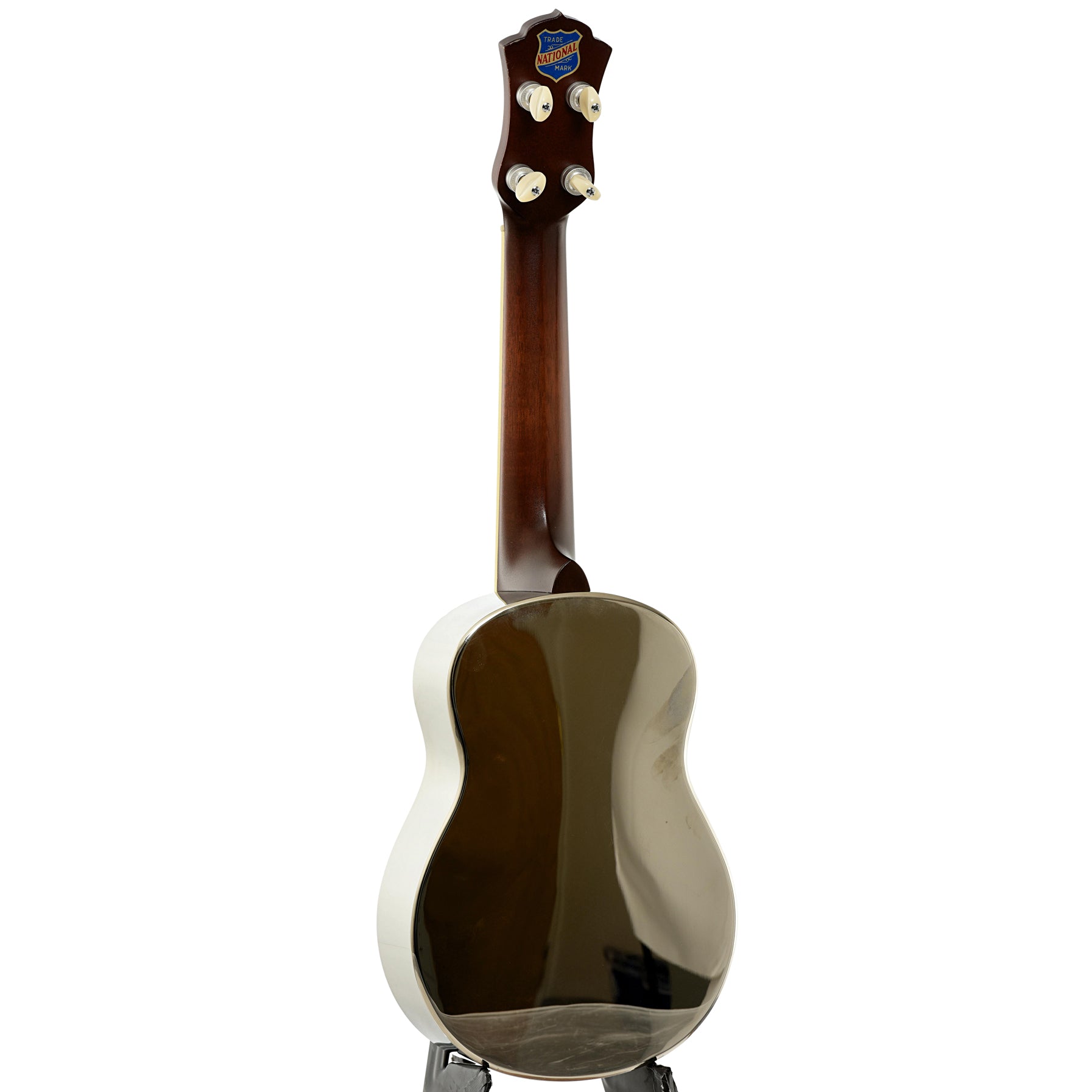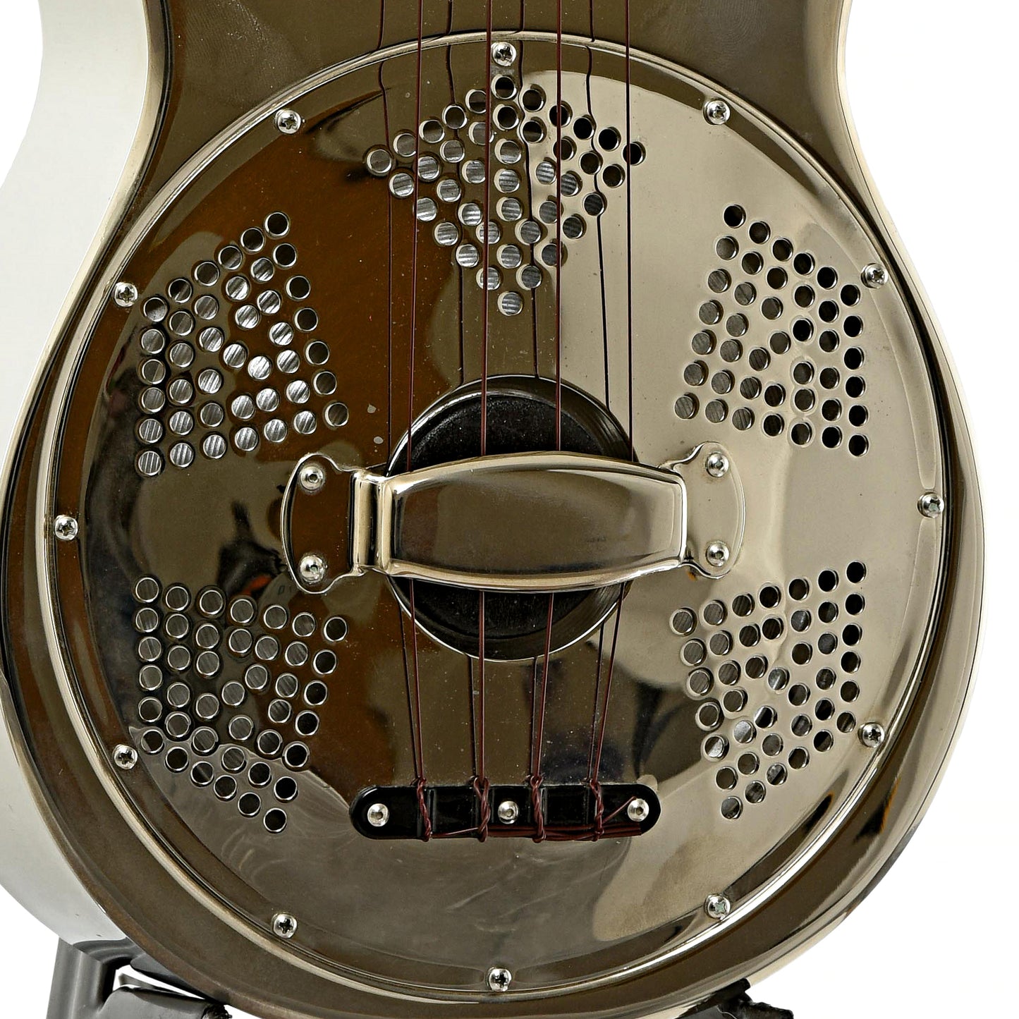 This cute little National soprano reso uke features a silver-plated plated brass, a 14-fret mahogany neck, and an ebony flat fingerboard with ivoroid binding and dots. It has an aluminum cone, biscuit bridge and diamond sieve coverplate. Gotoh tuners installed. Hard shell case. Made in USA.