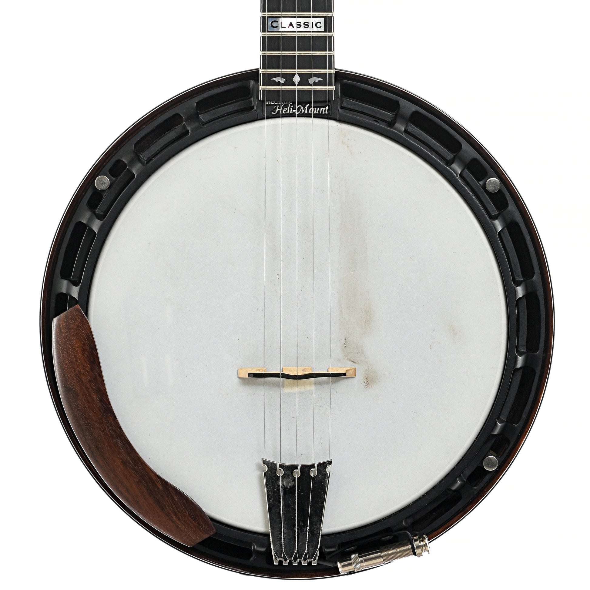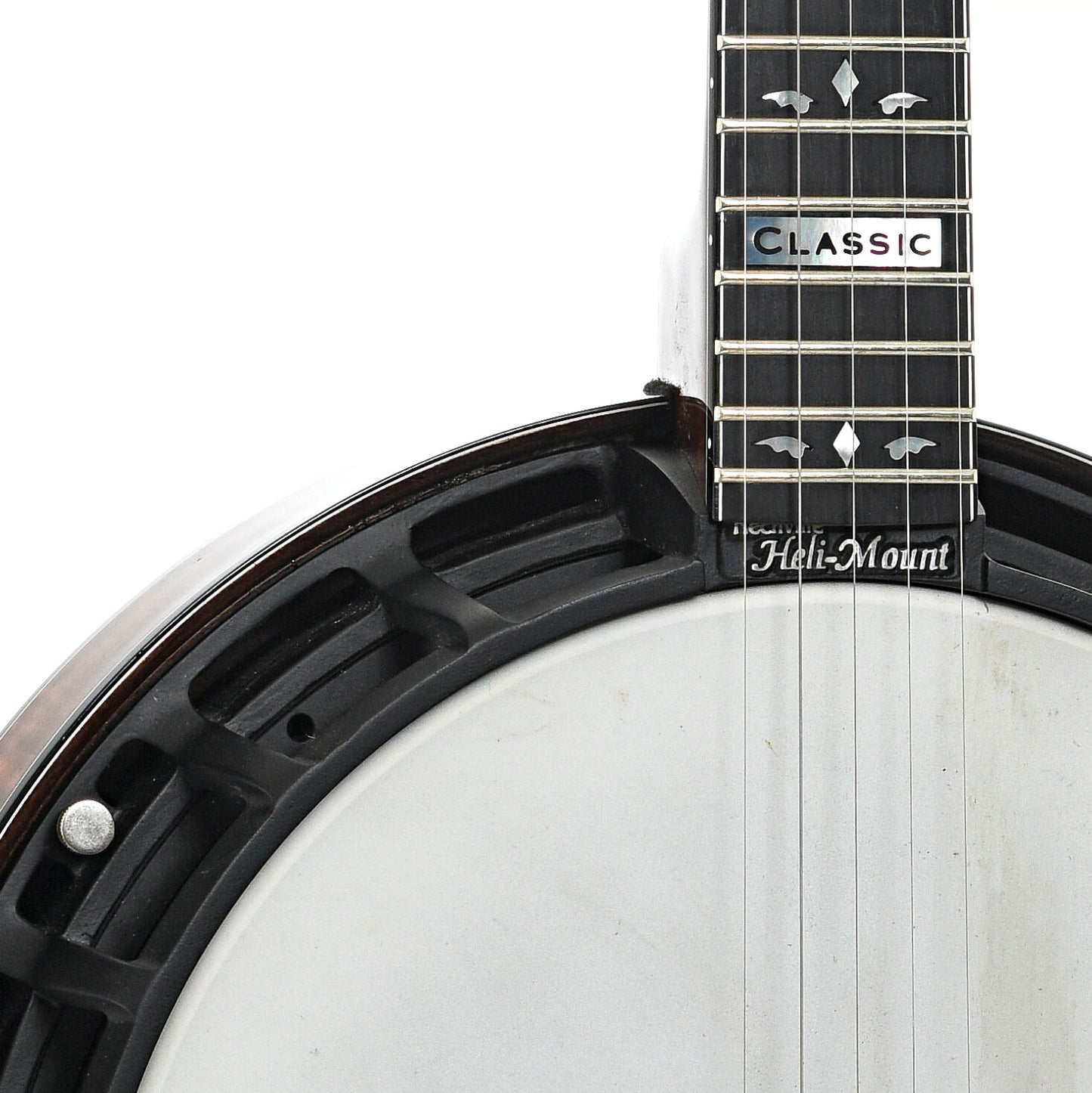Get rolling with this Classic Deluxe resonator banjo from Nechville! Features include a dazzling curly maple resonator and neck, ebony radiused fingerboard, Helimount tension/flange assembly, and a no-hole flathead tone ring. Equipped with factory EMG Warp Drive mgnetic/piezo pickup system and 2 Keith D-tuners. Love the warm and full tone! Hard shell case. Made in USA. On consignment.