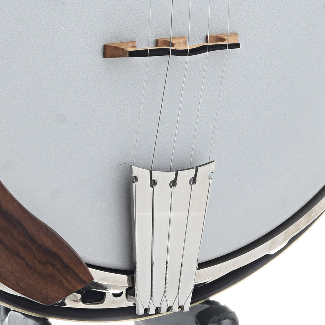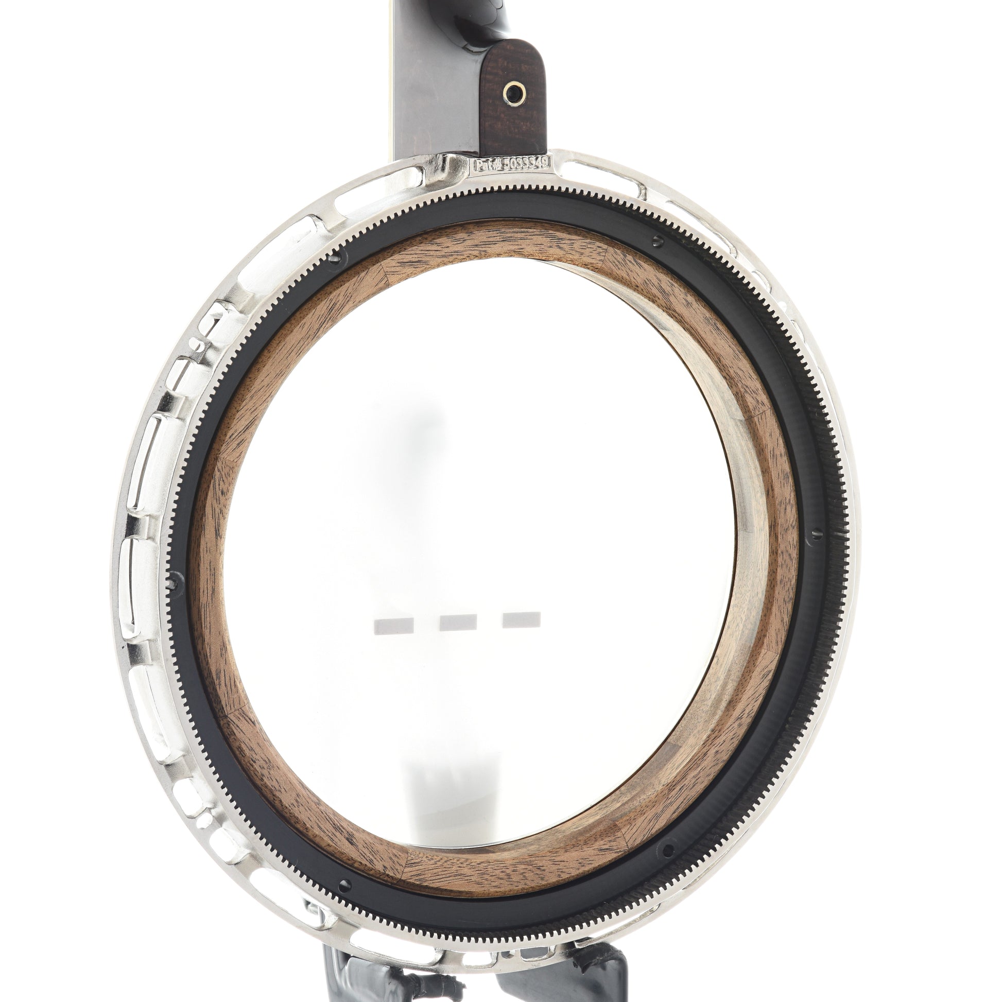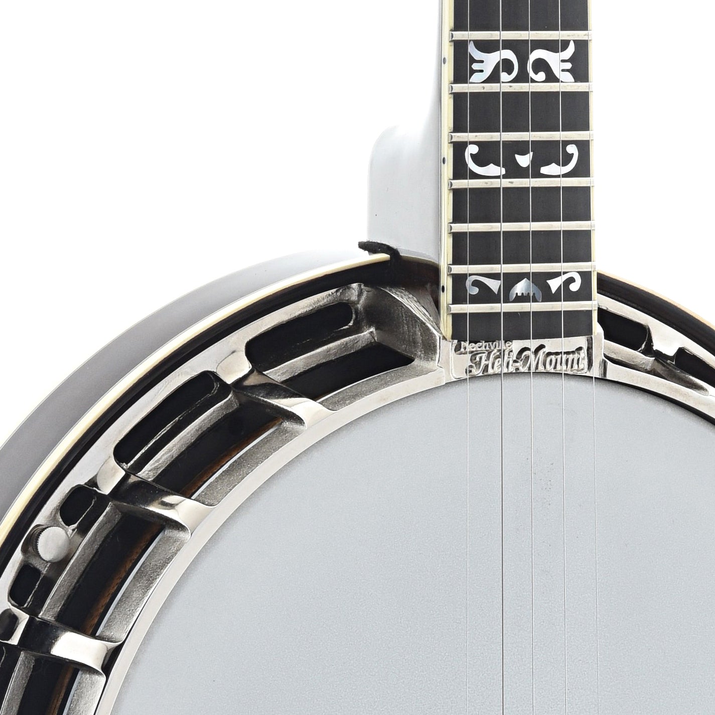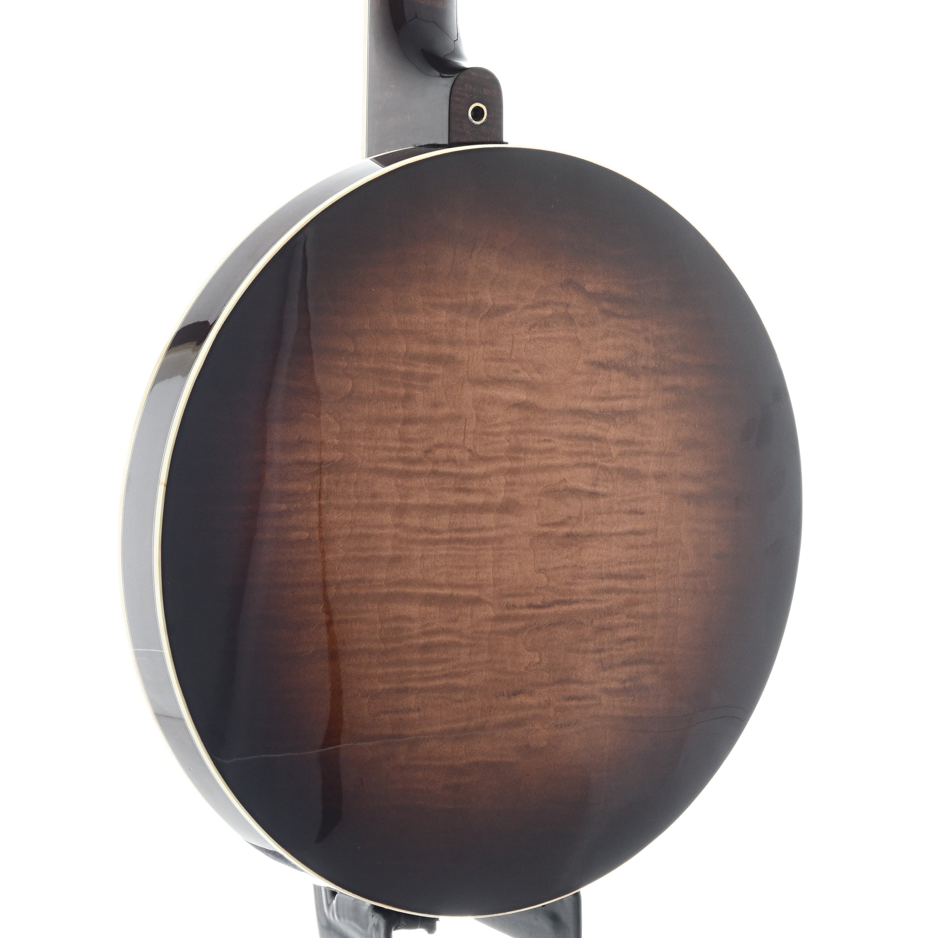 Sunburst maple neck & resonator, mahogany block style rim, Nechville's patented Cyclotronic tone system - 20-hole tone ring rests on ball bearings for easy tension adjustments. Nechville quick cam neck attachment, radiused ebony fretboard with ivoroid binding and pearl Flying Eagle inlay pattern. Hardshell case.