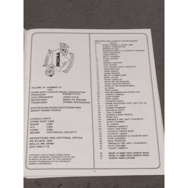 VGC, "where to enjoy good contry music * pictures and stories of New England * country entertainers", advertising booklet shows a snapshot of the New England country music scene in 1993