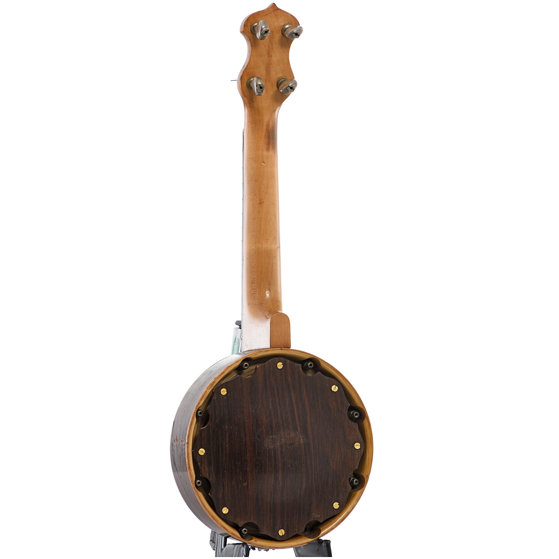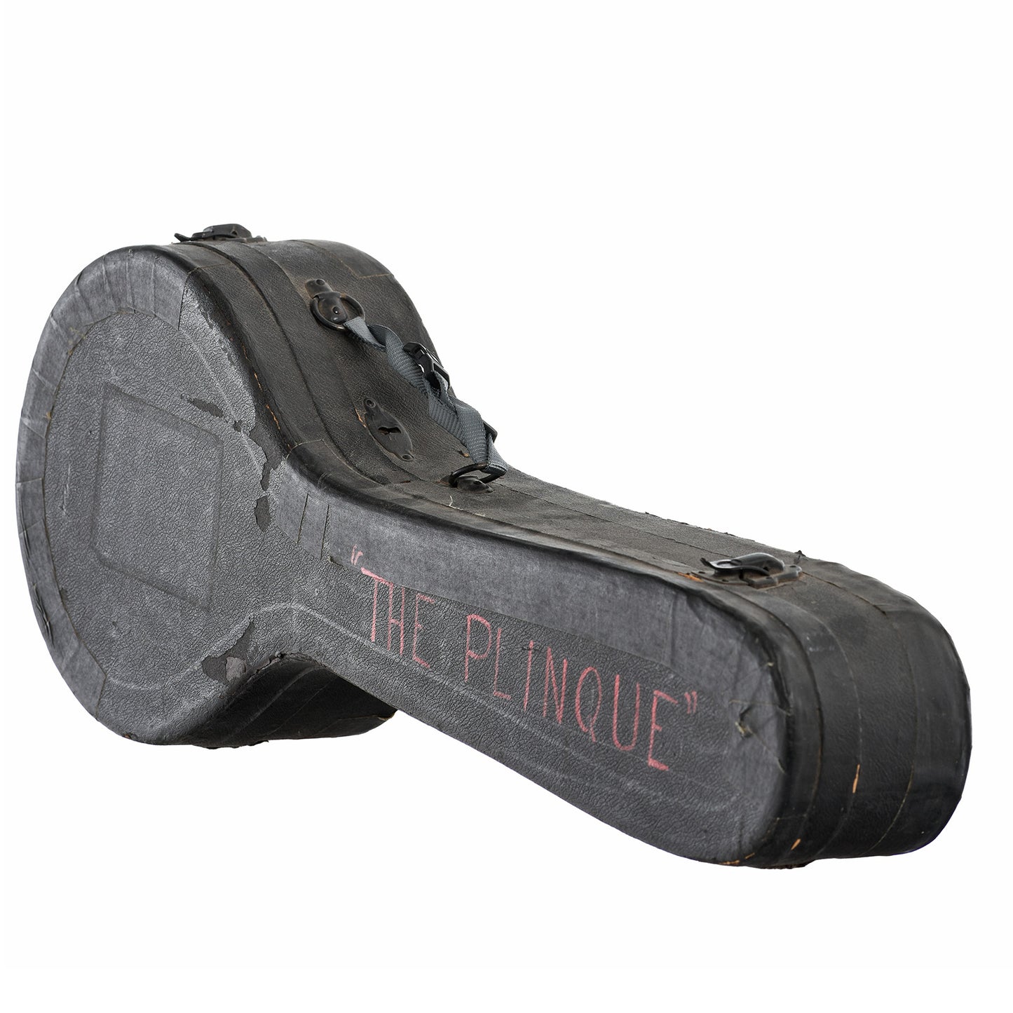 Alvin and Kelvin Keech grew up in Hawaii and were both playing ukulele from a young age. As adults they moved to San Francisco where they repaired, sold and gave ukulele lessons. They also played many society parties and social gatherings. Around 1916 Alvin began building banjo ukuleles. Kelvin had remained in Europe after WWI and In the 1920s they introduced and marketed their banjo ukuleles in Europe. This one is un-labeled, but is definitely their work. With rough period hard shell case.