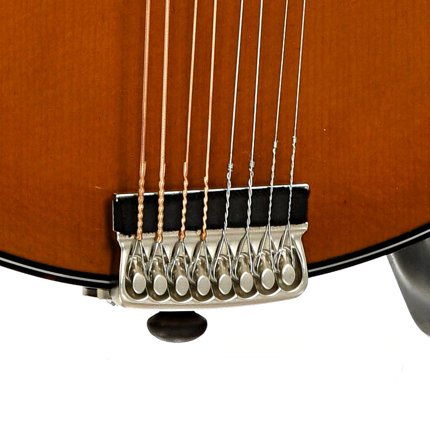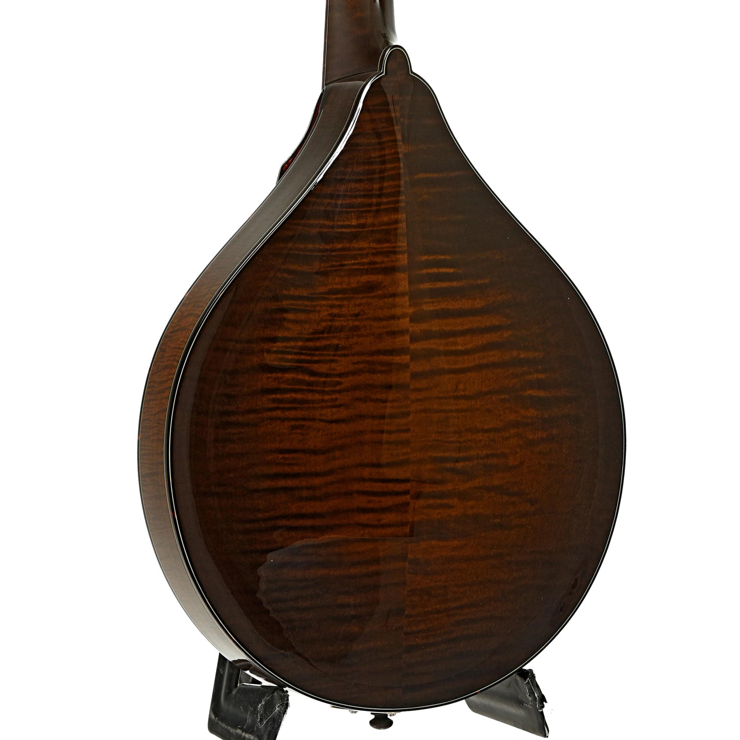 A unique mandolin that is a blend of a few Northfield designs. This A5 borrows from the very popular Model M and Artist Series Mandolins to create a powerful response in an elegantly appointed instrument. This one has an amber top with brown back and sides.
