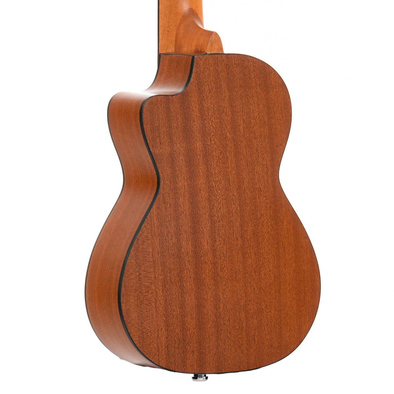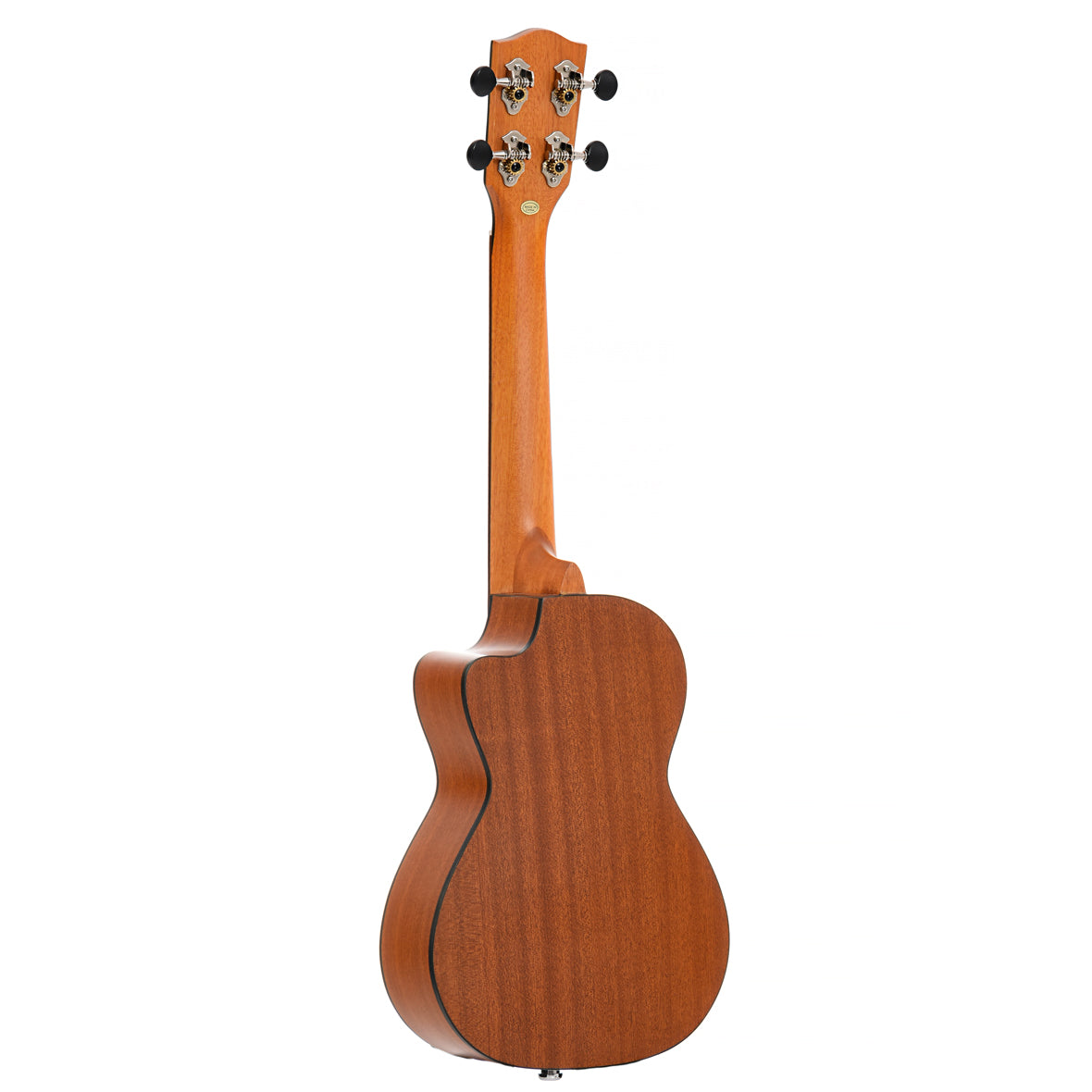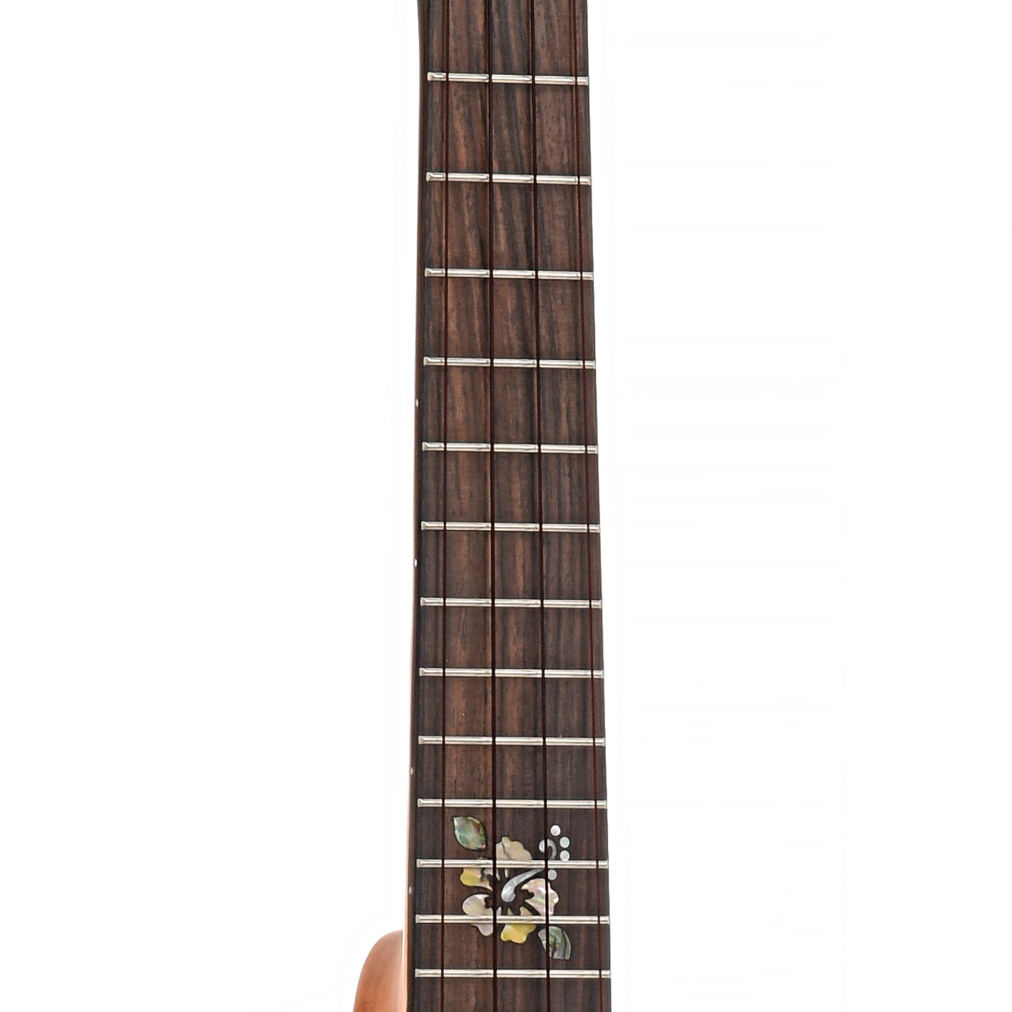 The Ohana CK-25CE-CL solid top Cynthia Lin signature concert ukulele is crafted of mahogany and has great sound to match its impressive looks. A floral inlay in beautiful abalone at the 12th fret is inspired by the flower that Cynthia often wears in her hair. Worth brown fluoro-carbon strings really allow this beauty to sing. The passive pickup makes it ready for the stage.
