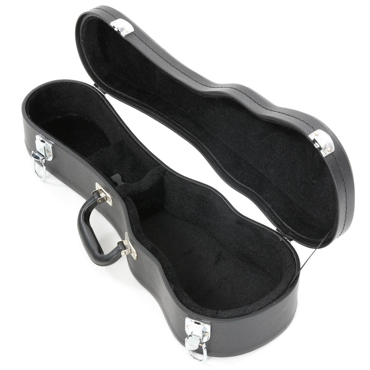 Fits the Ohana sopranino ukuleles and similarly sized ukes. Strong wood case covered with black "Dura-Grip" covering. Ukulele shaped. Plush lined. Provides excellent ukulele protection. Flat lid (not arched like other sizes in series).