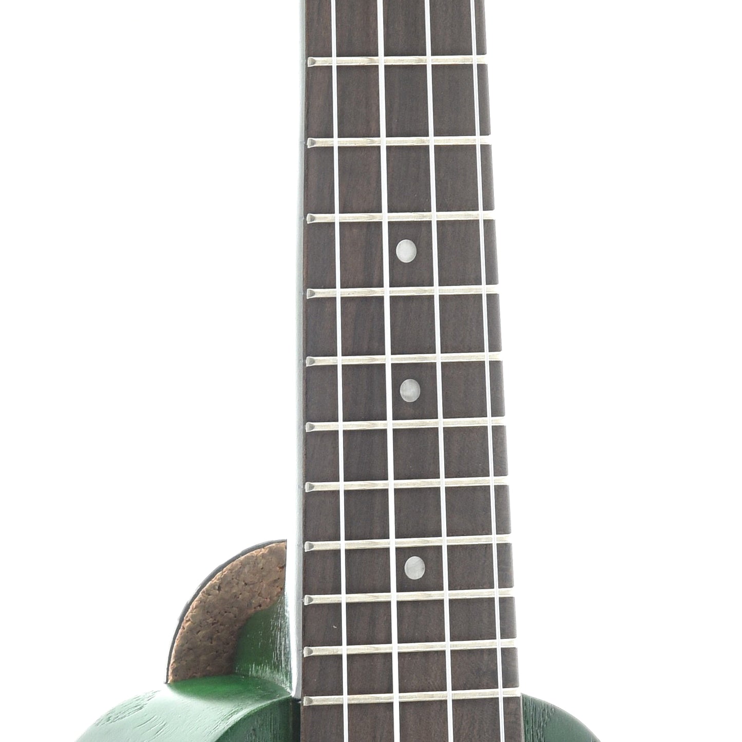 Even smaller than a sopranino ukulele, this sopranissimo uke is made from distinctive green stained willow wood for a striking look and nice sound. Nice appointments include a 12-fret rosewood fingerboard and geared tuners with white buttons. Easy to carry and fun to play, this uke is a great addition to any collection.