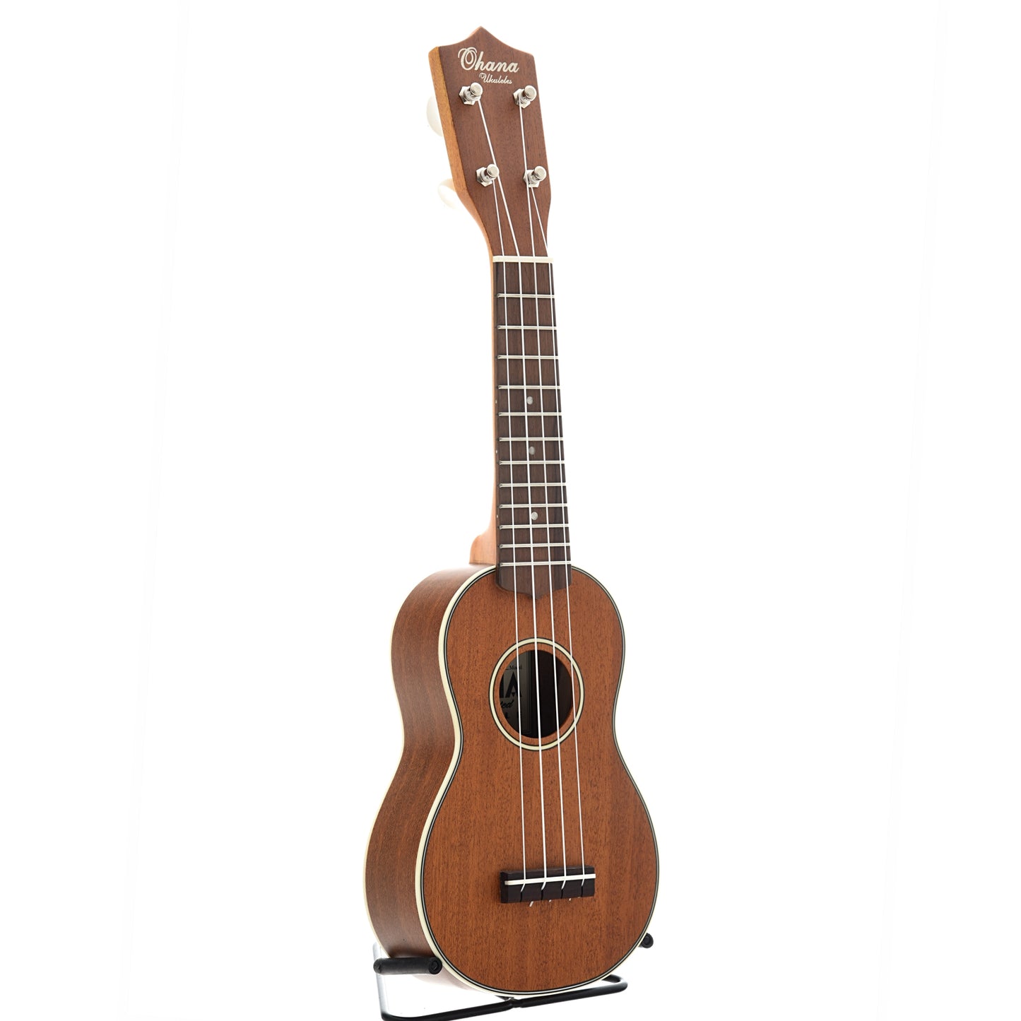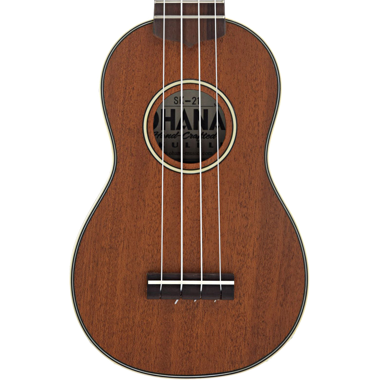 A cute little uke that really brings it! This Ohana SK-21 sopranino ukulele is built with all solid mahogany. Nice appointments include white body binding, b/w/b top purfling and rosette, and deluxe friction tuners with white buttons. A nice sounding little instrument.