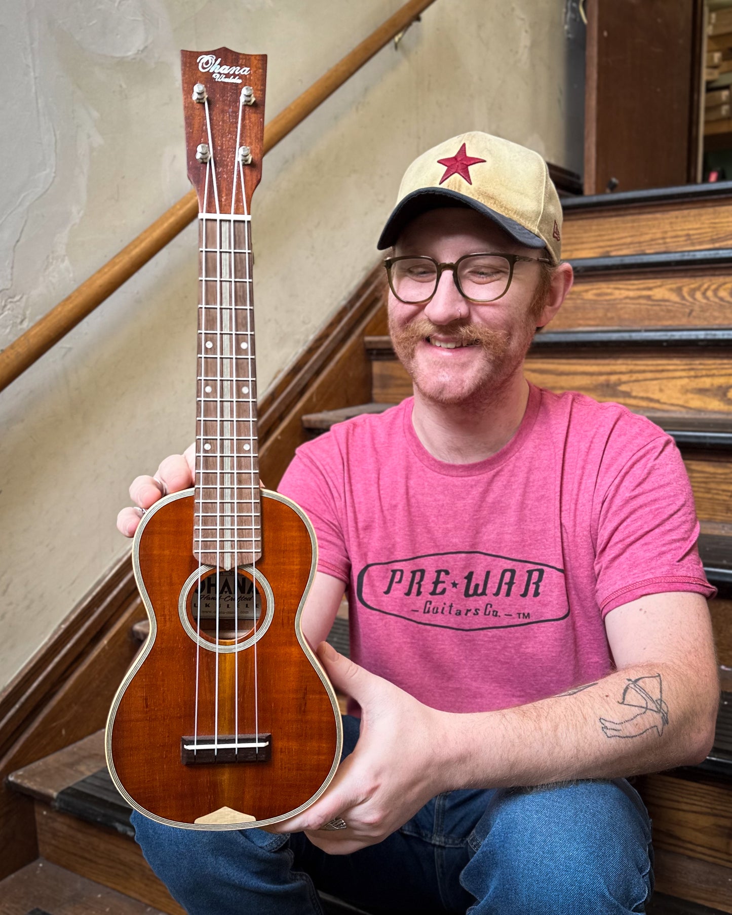The Ohana SK-390 soprano is styled after vintage Martin 3K ukes from the 1920s. Its beautiful all-solid Koa construction provides this soprano with very bright and balanced sound with really nice sustain and resonance. Hardshell case included.