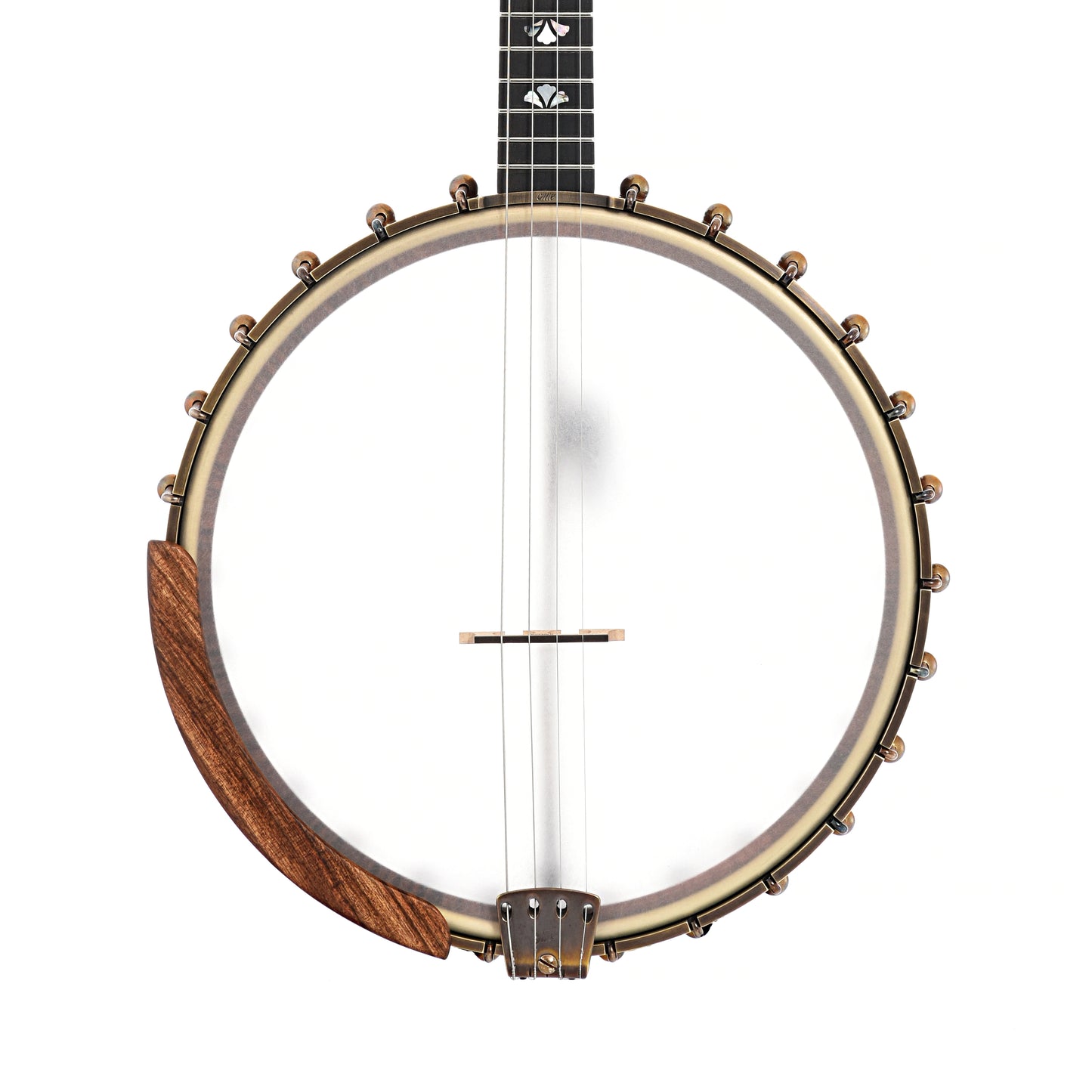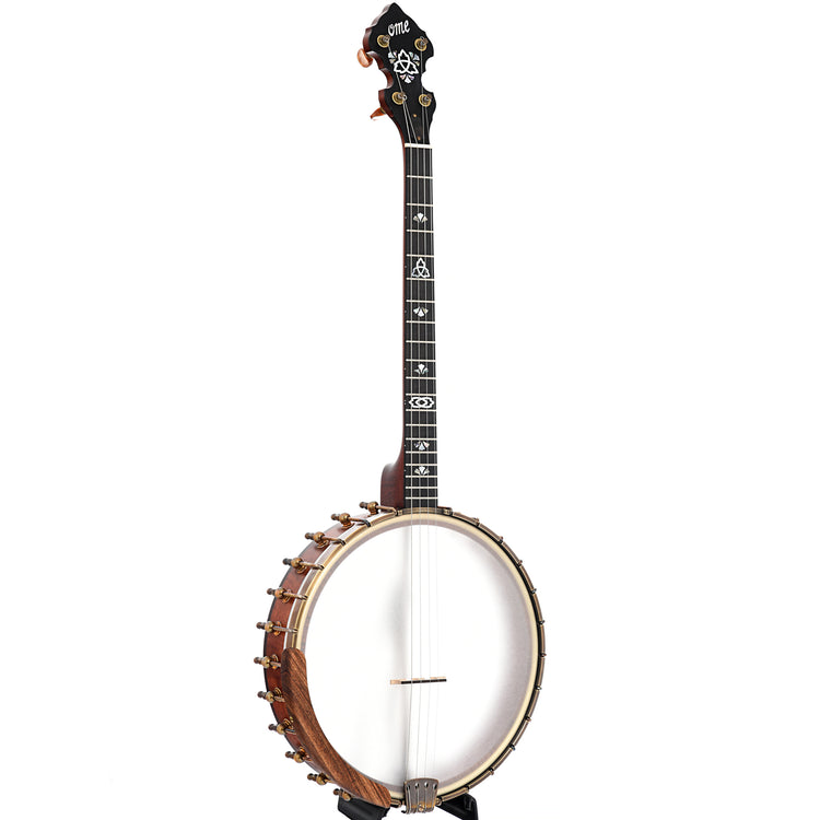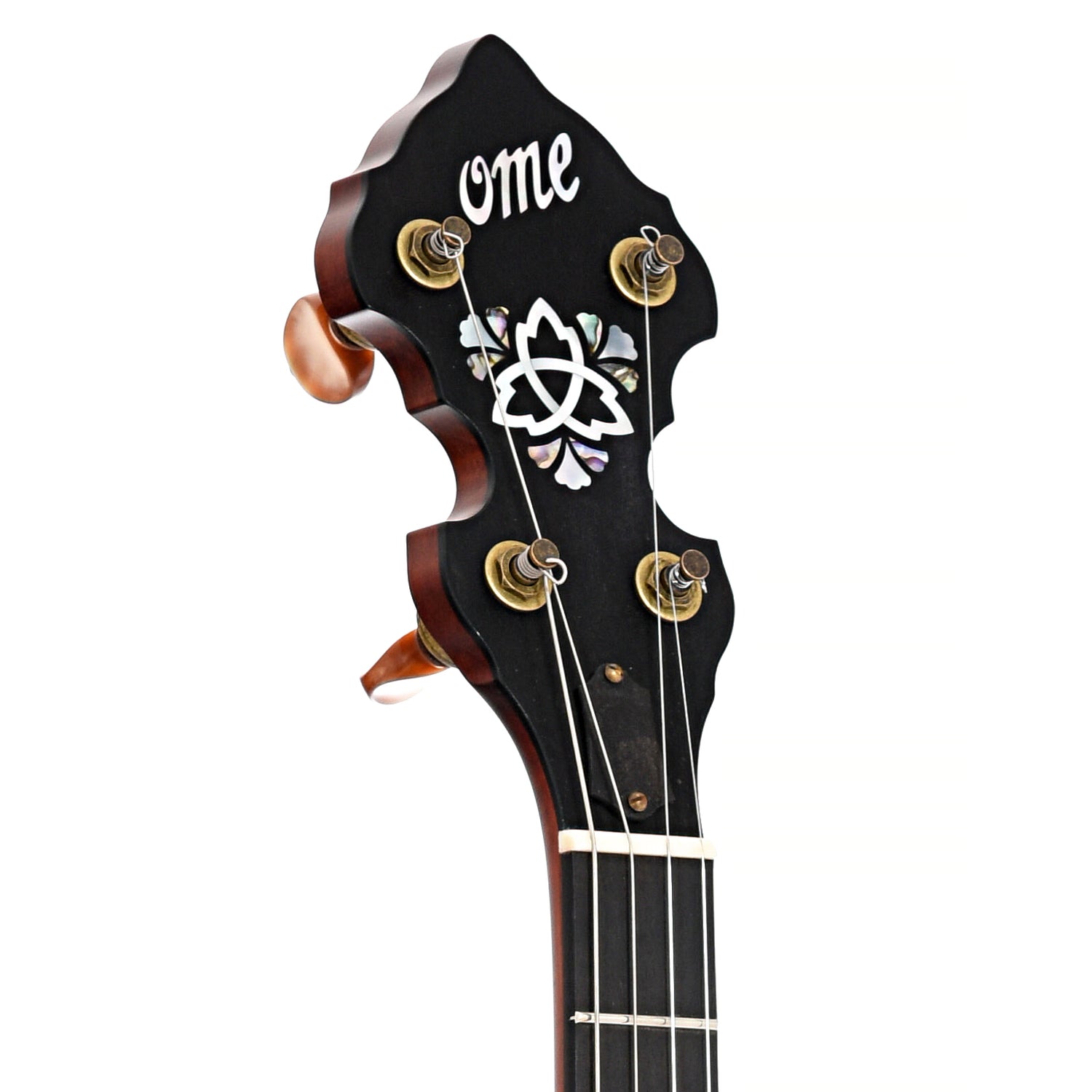 Ome's Celtic Tenor Banjo is a Vintage Series openback featuring a beautiful dark-stained curly maple 19-fret neck with Celtic-inspired inlays in the ebony fretboard. Rolled brass tone hoop provides a warm bassy tone. Strung for GDAE tuning. Ome's sturdy, well-padded gigbag included.