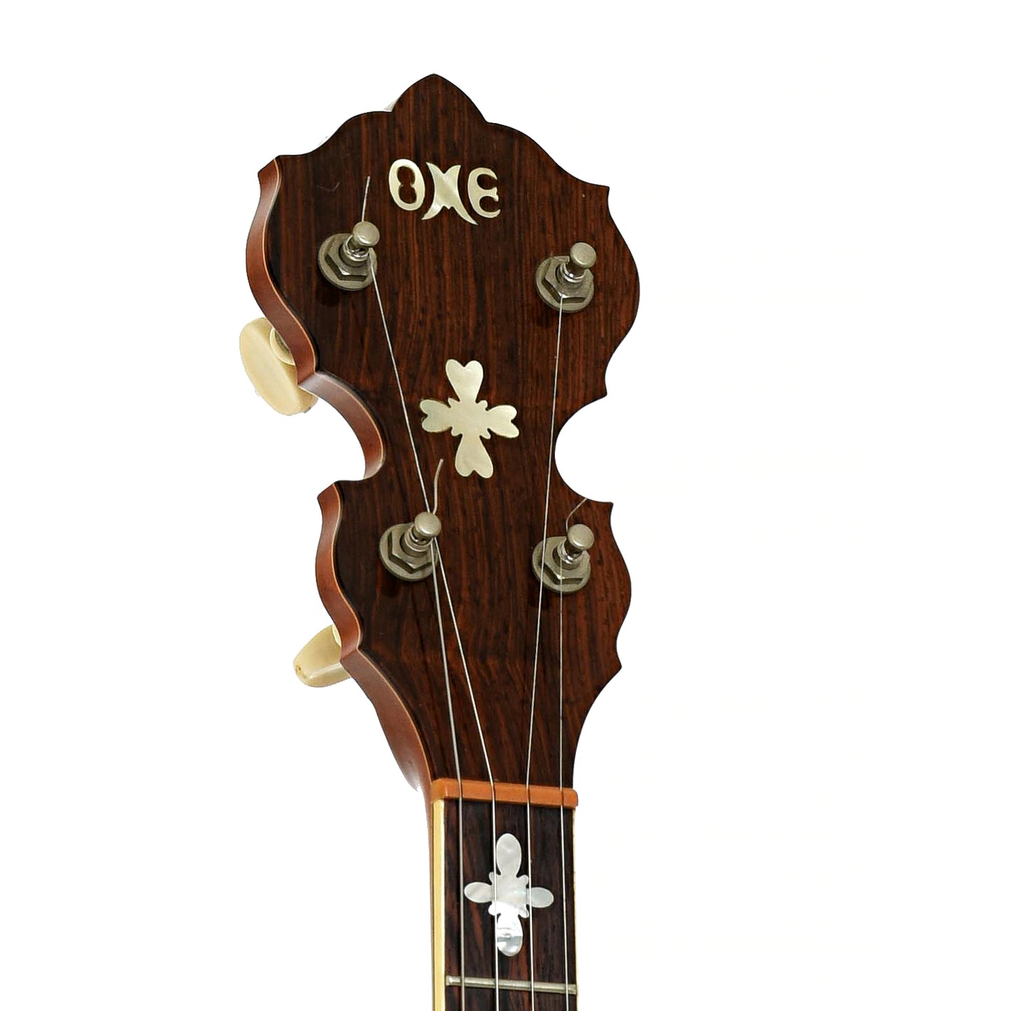 A fine example of Chuck Ogsbury’s Rocky Mountain craftsmanship, this Ome XX Custom features a mahogany neck and resonator, a flathead tone ring, and an upgraded Brazilian rosewood fingerboard and headstock overlay with fancy pearl inlays. Includes the original hard shell case.