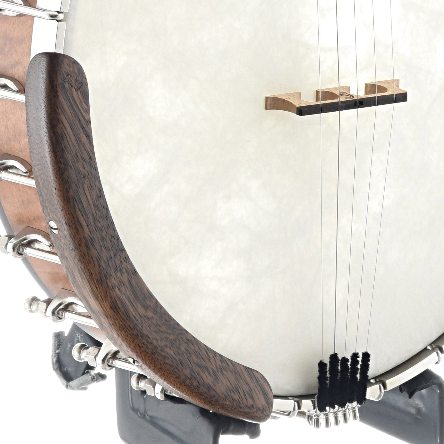- Two adjustable brass rim rods & Maple/Ebony bridge