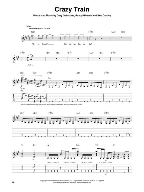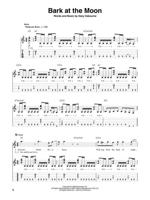 Book with online audio. Learn to play songs faster than ever before. Accurate, easy-to-read guitar tab and professional, customizable audio for 15 songs. The interactive online audio interface includes tempo/pitch control, looping, buttons to turn instruments on or off, and guitar tab with follow-along marker. The tracks can also be downloaded and played offline. Features Playback+, an audio player that lets you slow down without changing pitch, set loop points, change keys, and pan left or right. 15 songs: Bark at the Moon, Crazy Train, Dreamer, Goodbye to Romance, I Don't Know, I Don't Wanna Stop, Mama, I'm Coming Home, Miracle Man, Mr. Crowley, No More Tears, Over the Mountain, Perry Mason, Rock 'N Roll Rebel and Shot in the Dark. Note/tab. 141 pp.