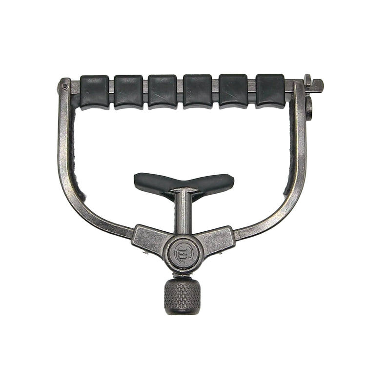 The Paige Clik ETI classical guitar capo is designed for enhanced tone. It engages with light pressure for tuning stability, and stores behind your guitar nut, With Paige's patented Clik quick release system for easy on & off! Made in USA.