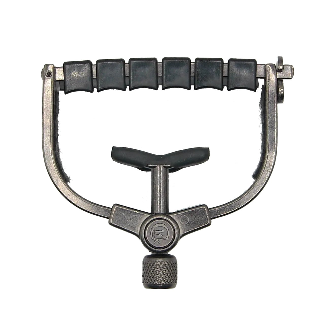 The Paige Clik ETI guitar capo is designed for enhanced tone. It engages with light pressure for tuning stability, and stores behind your guitar nut, With Paige's patented Clik quick release system for easy on & off!