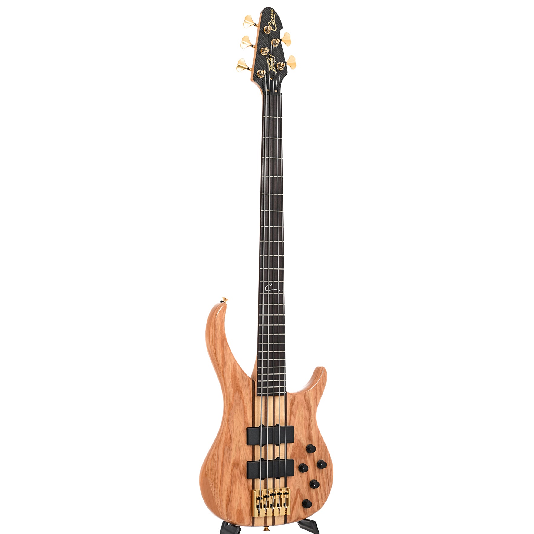 Nice import version of Peavey's popular Cirrus model. Features on this 5-string are neck-thru body construction, gloss natural finish, red oak top, alder body wings, 2 humbucking pickups and active electronics, milled brass bridge. Huge range, modern sound. Original hard shell case. Built in Indonesia.