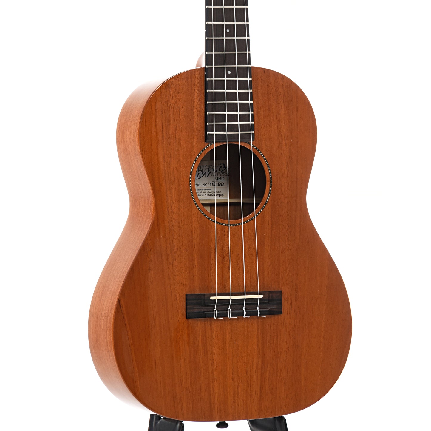 This Pono Baritone features a solid mahogany body for a warm, rich sound. Includes a gloss finish, rosewood fingerboard and bridge, modern tuners. Original hard shell case. Made in Indonesia. On consignment.