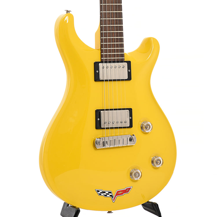 All revved up and ready to go! This PRS sports a gloss Velocity Yellow finish on a double cutaway mahogany body and neck, 22-fret rosewood fingerboard, and pearl "Z06" inlay on frets 2-8 which reads "505 HP". Equipped with two Dragon II humbucking pickups, 5-way rotary switch, wrapover bridge. Original hard shell case. Made in USA. On consignment.
