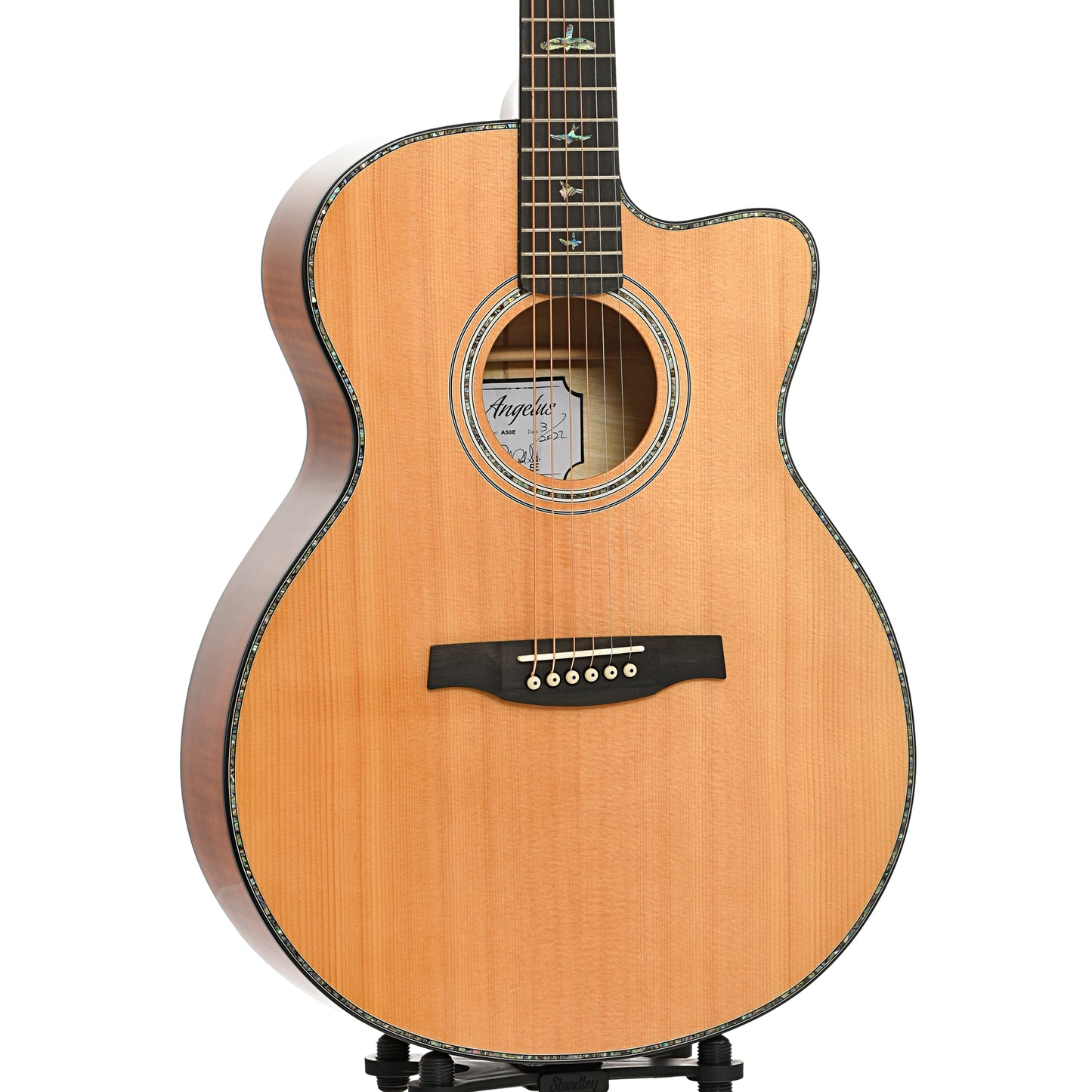 An attractive steel-string acoustic, this PRS Angelus has a big 15-3/8" body of spruce and flamed maple, a mahogany neck, and an ebony fingerboard and bridge Equipped with a factory Fishman Sonitone pickup system. Original hard shell case. Import.