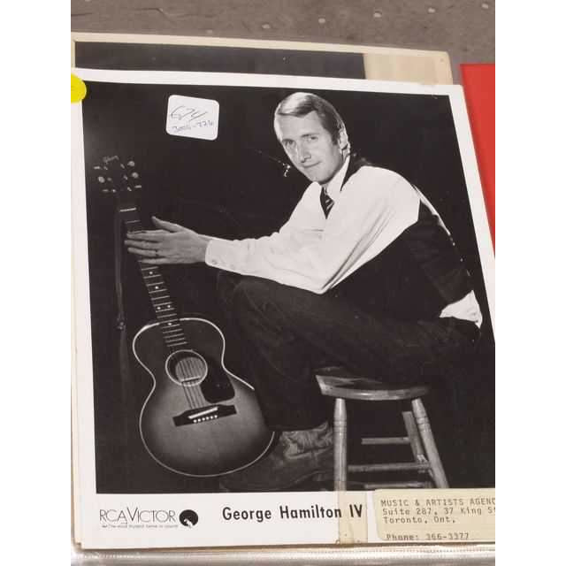 VGC, small tear in bottom of photo (mended with cellophane tape), show Hamilton with a Gibson LG-2-3/4 guitar