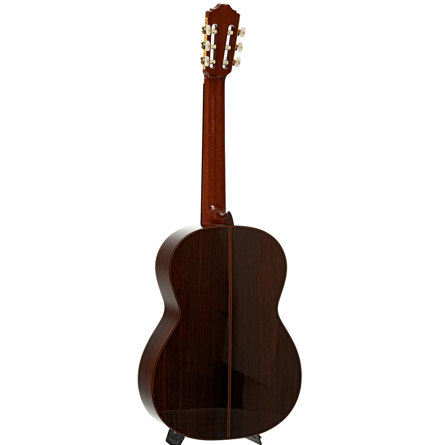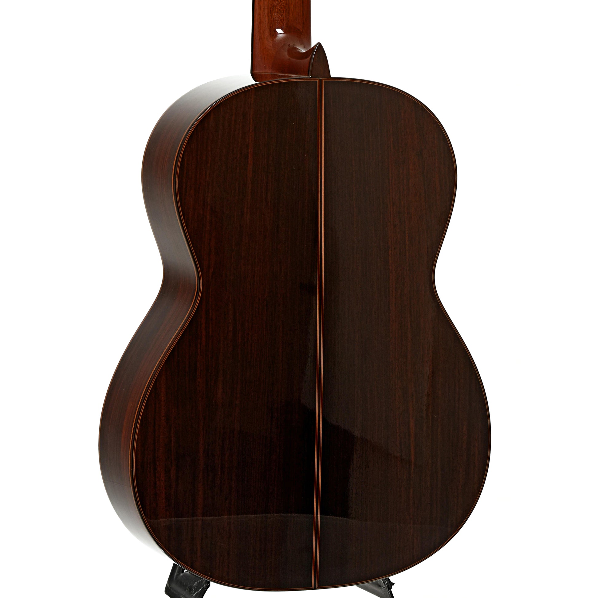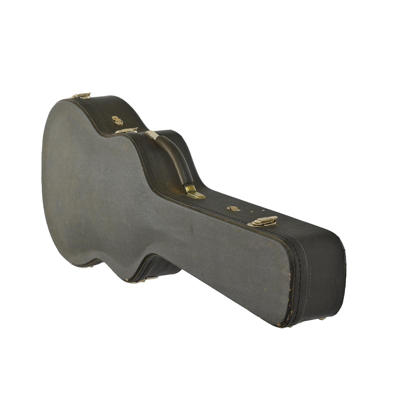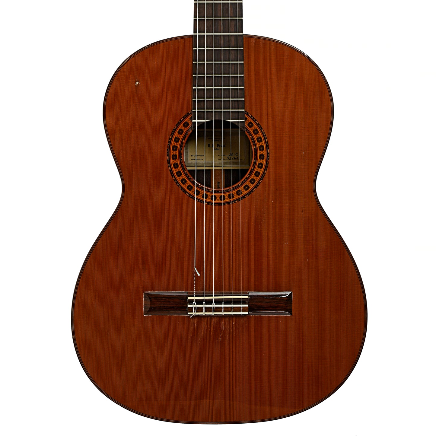 Built in the Asturias workshop in Japan to R.E. Brune’s specifications. Features all solid woods with a cedar top and rosewood back and sides, plus Brune's unique bracing pattern. Gold Lyra-style tuners with pearloid buttons add a touch of elegance. With period hard shell case (blue lining).