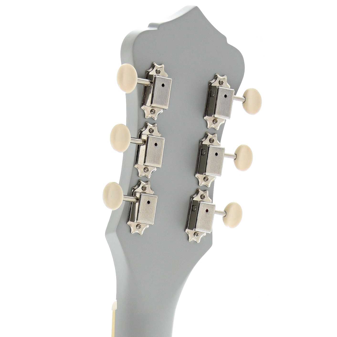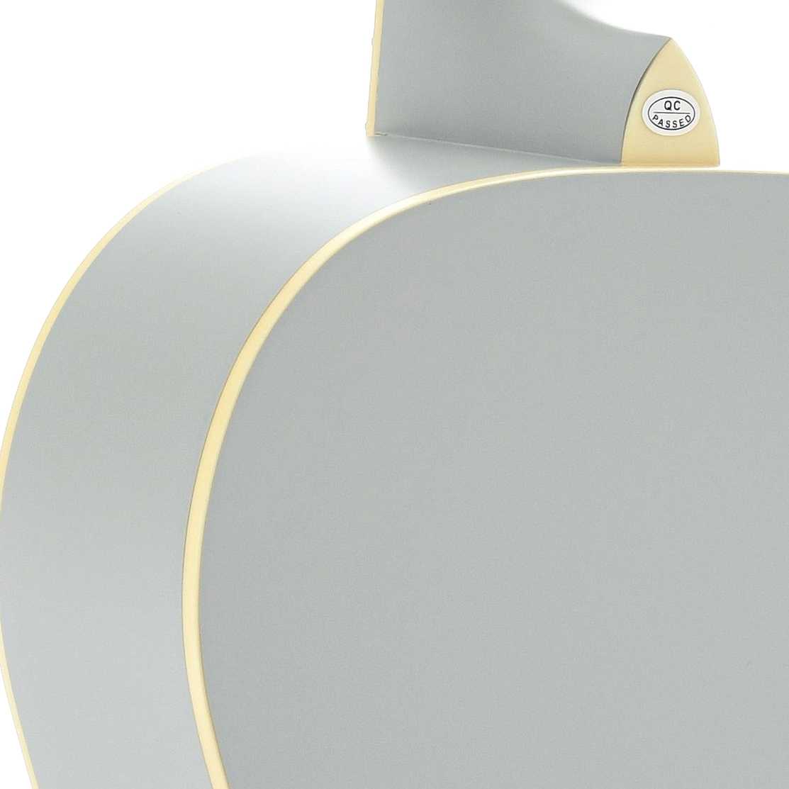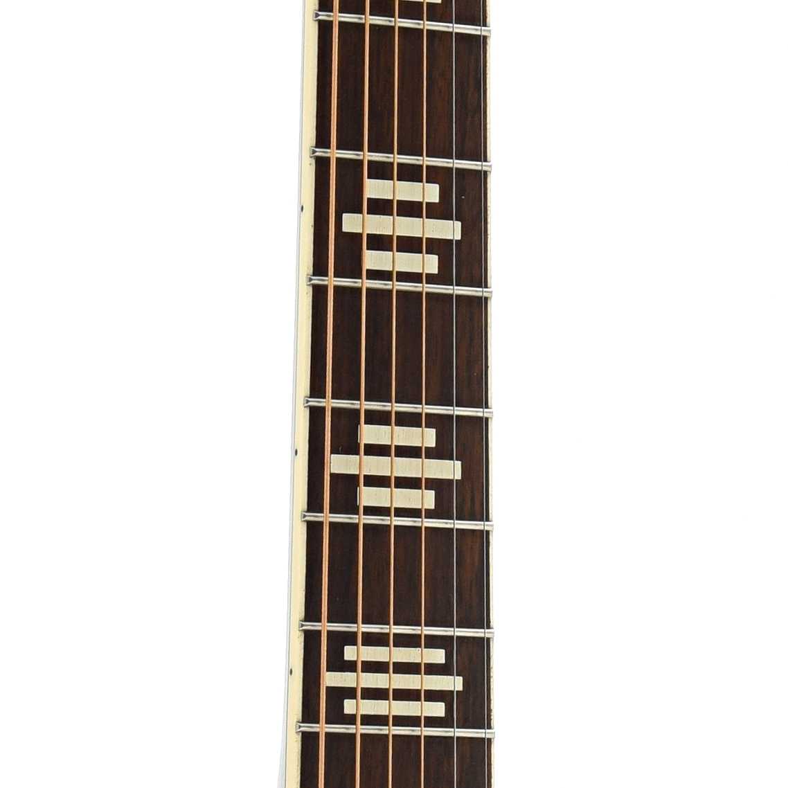 Another flavor of finish for the Dirty 30's Series 7 0-size guitar. The checkerboard purfling is removed, and an ivory teardrop pickguard is added. Also features a satin gray finish and ivory body binding and pickguard.