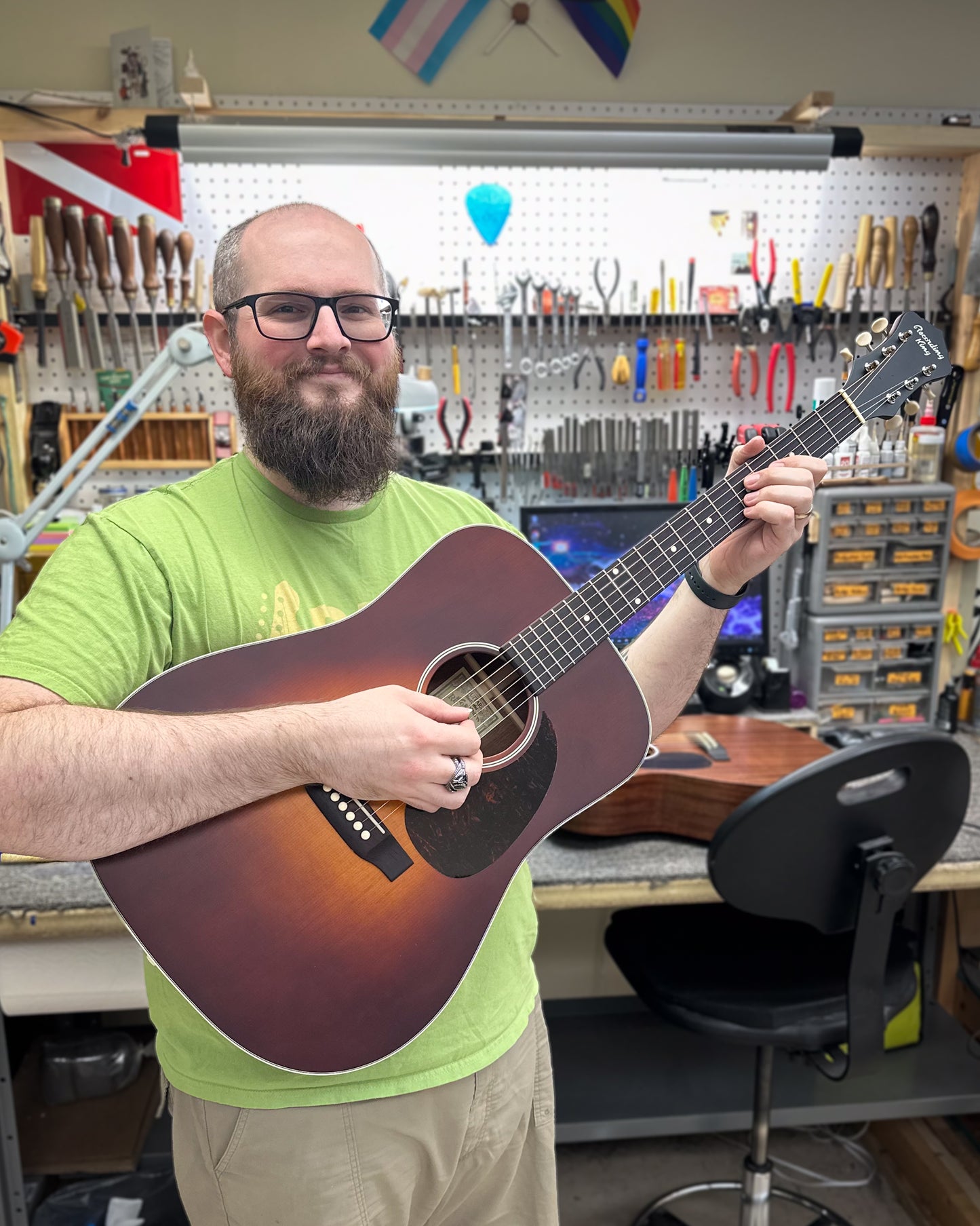 The foundation of the Series 11 sound comes from a solid spruce top paired with solid mahogany back and sides. These traditional all-solid tonewoods deliver a classic sound that will deepen over years of playing. Vintage-inspired appointments include a brownburst finish top, a tortoise plastic pickguard, and 3-on-a-side open gear tuners. The built-in Fishman Sonitone pickup makes it easy to bring your acoustic sound to the stage.
