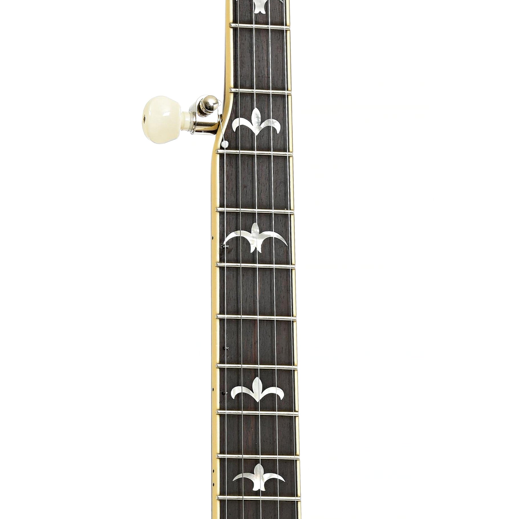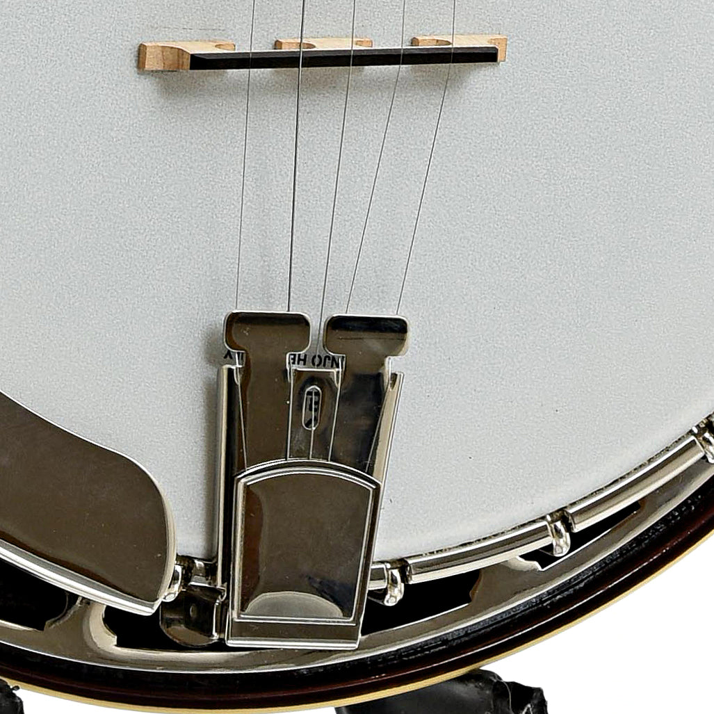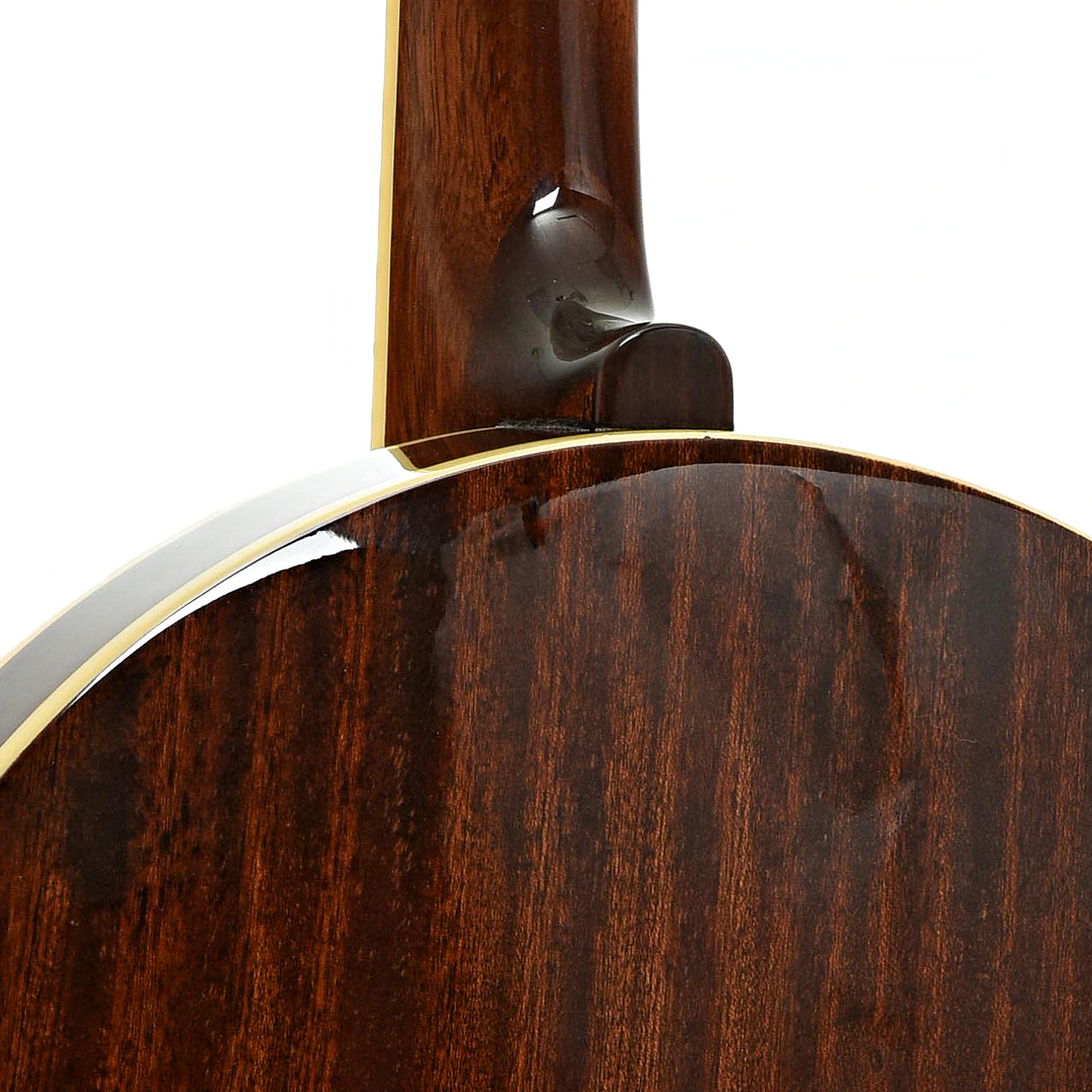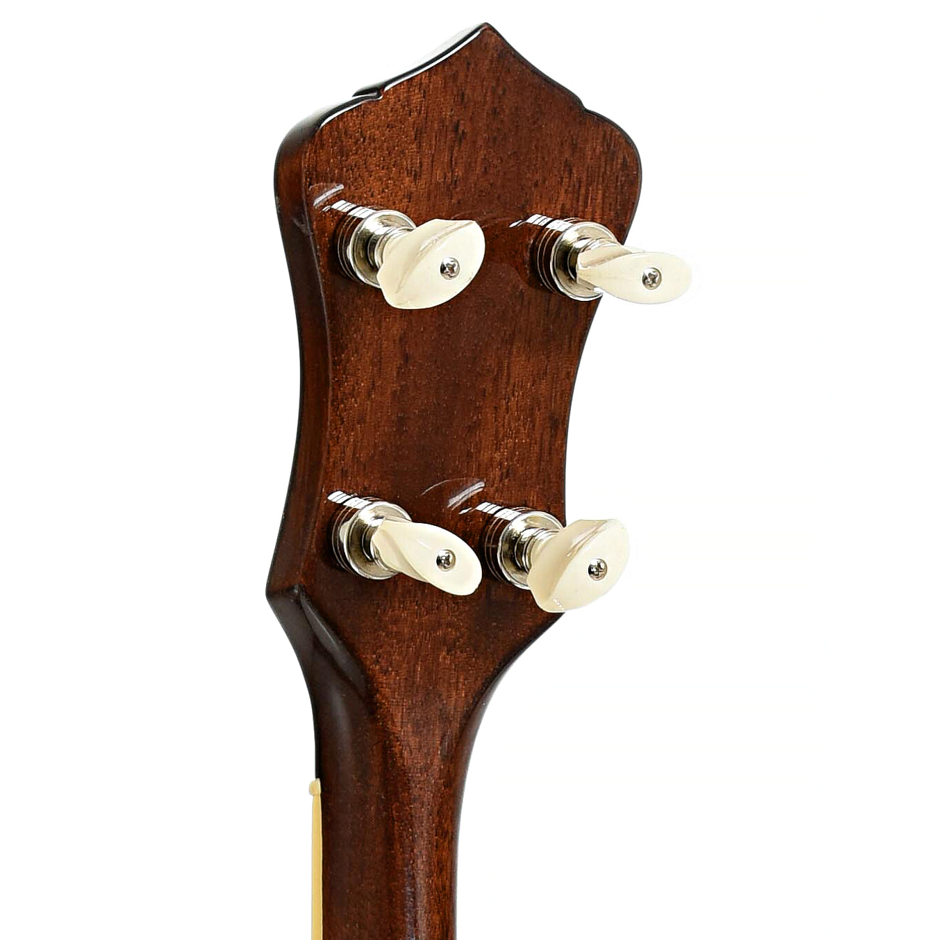 This affordable and high-quality RK Madison Deluxe resonator banjo features a flathead tone ring, one-piece flange, mahogany neck, double-bound resonator, and maple rim. Equipped with Planetary tuners and a geared 5th string, it delivers impressive tone and value. The headstock has been repaired by our shop. Includes hard shell case.