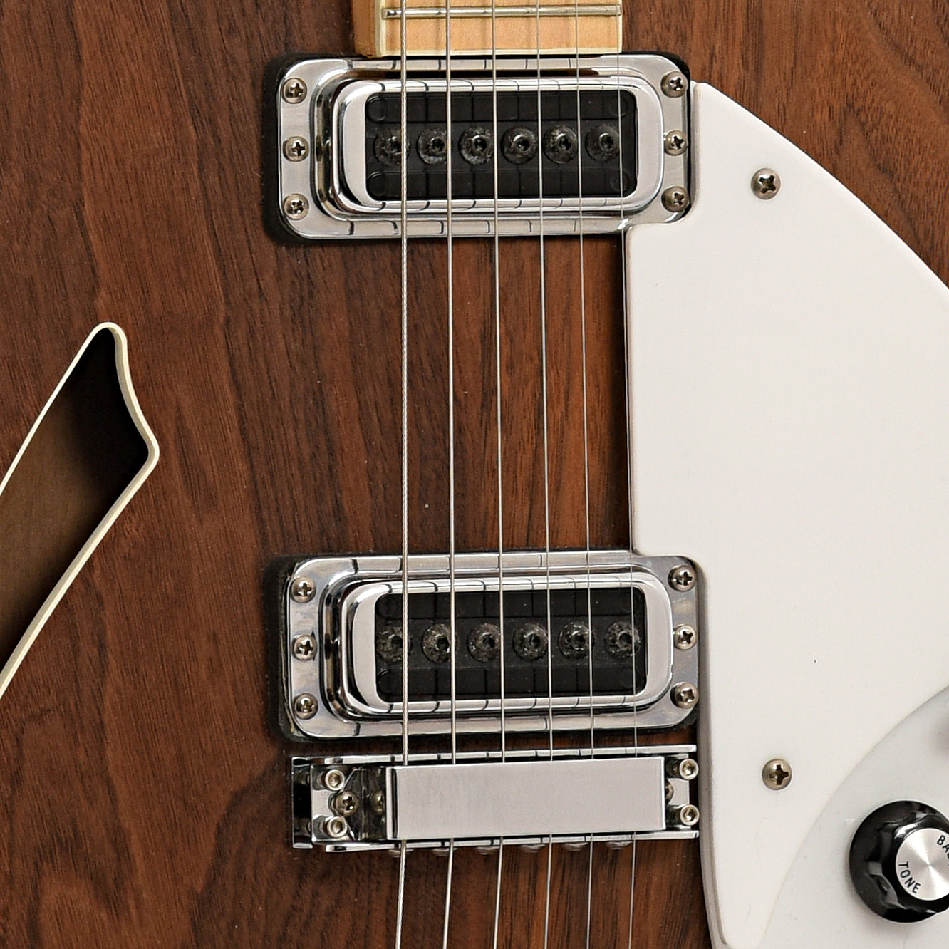 Cool looks and sound, satin natural finish, modern (post '64 style) all walnut body with binding on back, bound maple fretboard, triangle inlays, 24 frets, 2 modern Rick pickups, stereo, EC