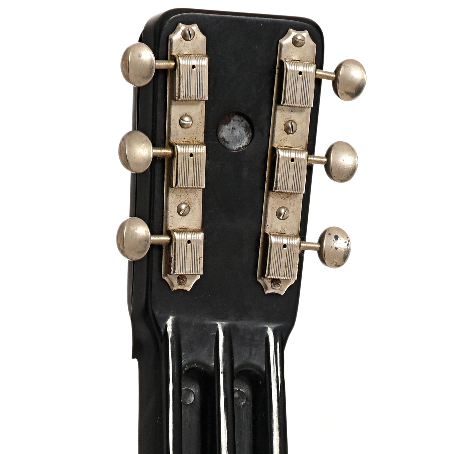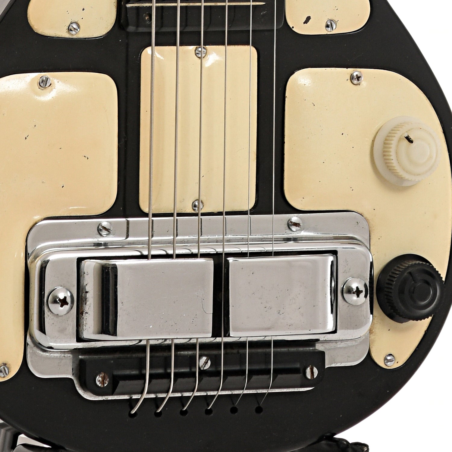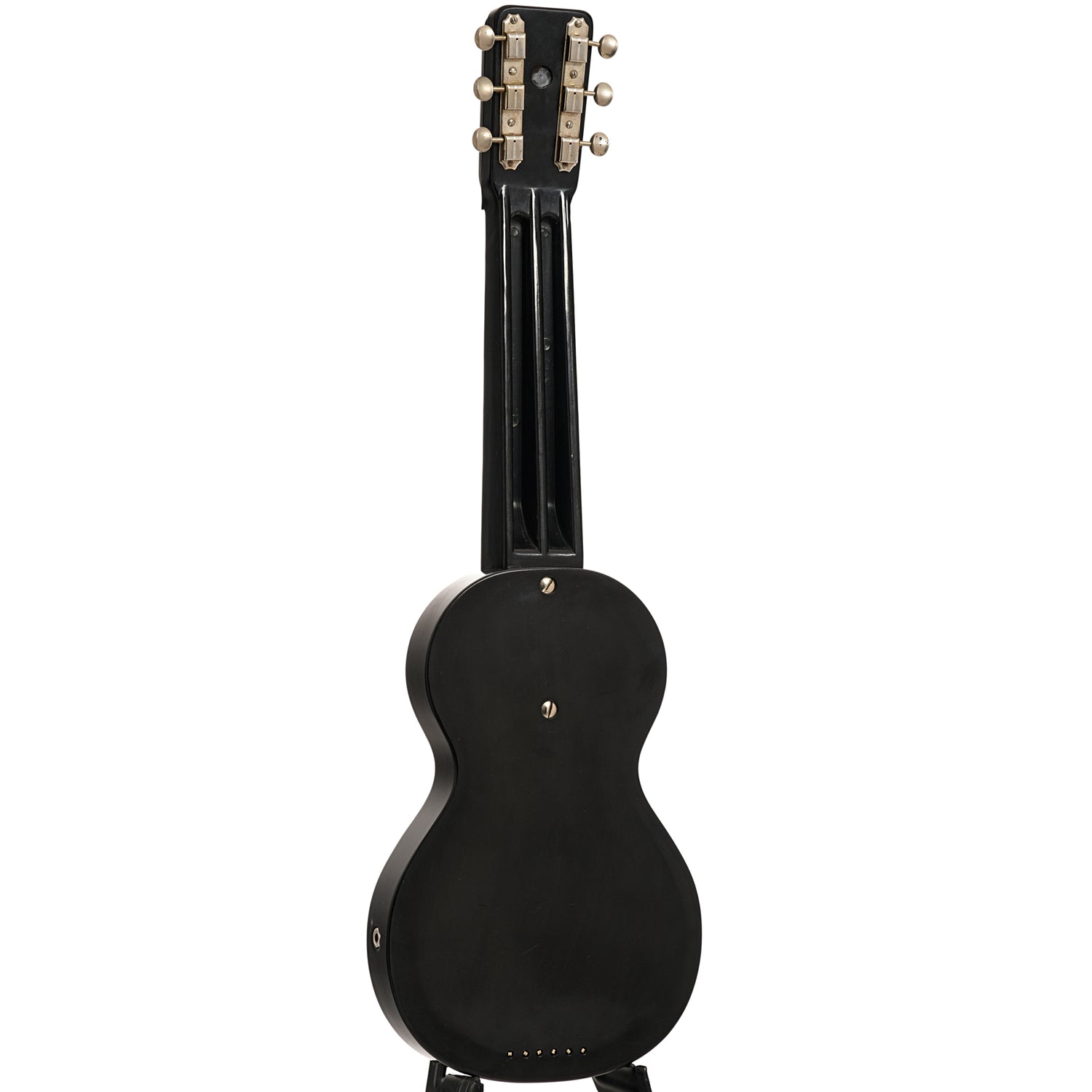 Incredible lap steel tone! This historic BD6 features a bakelite body (and neck) with white cavity cover plates, 23 molded frets, metal flip cover on peghead, strings load through body. Equipped with a horseshoe magnet pickup. Original soft shell case. Made in USA.