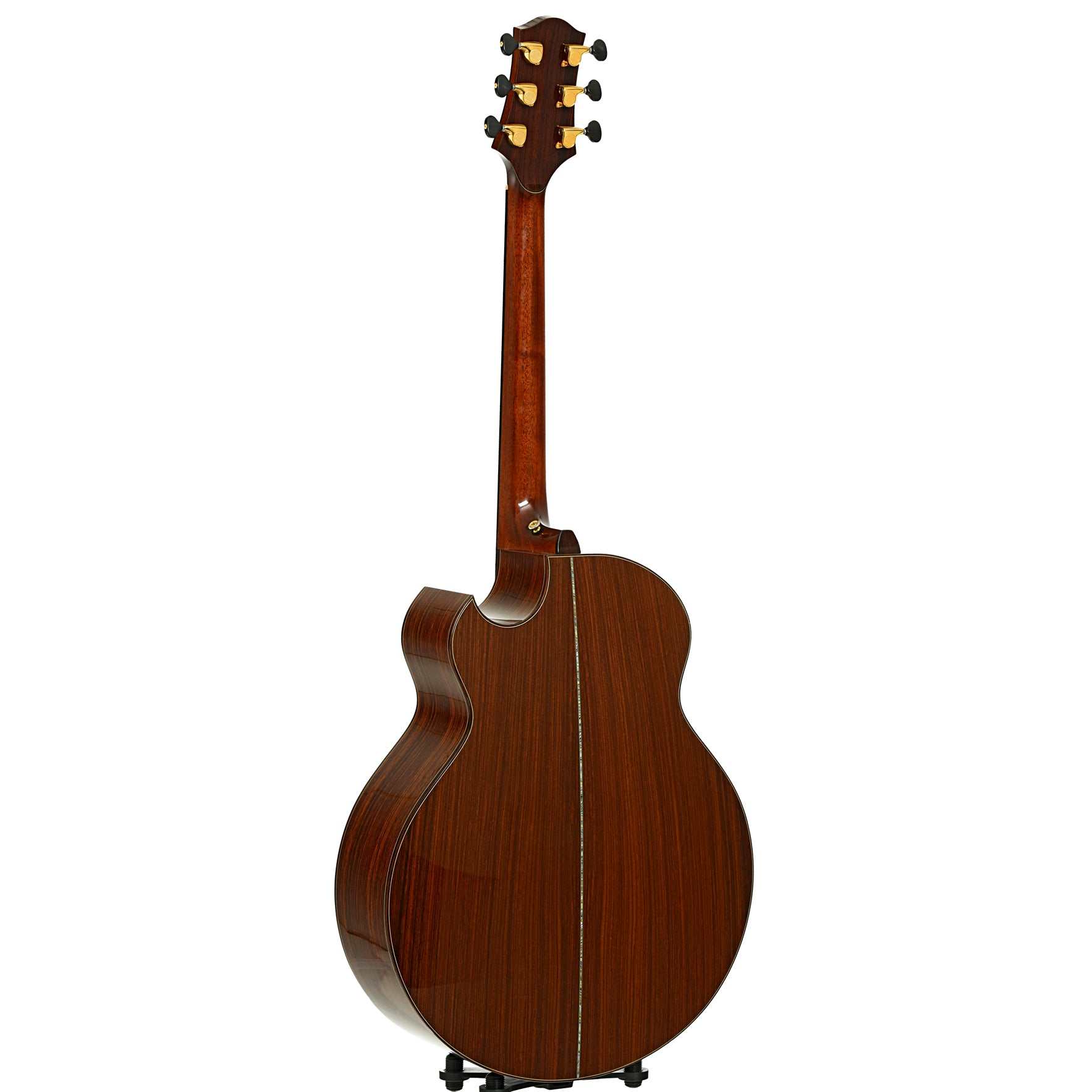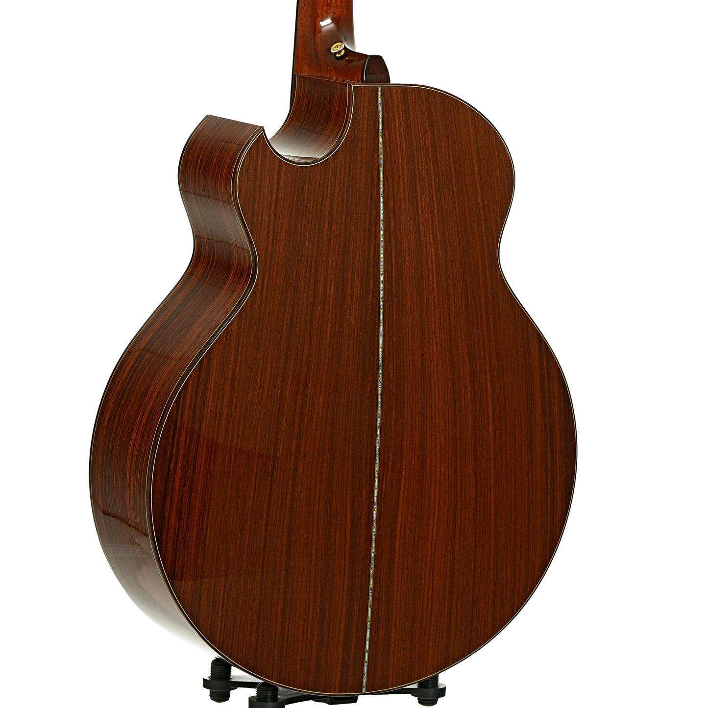 - Macassar ebony peghead front overlay, rosewood back, abalone "R"
