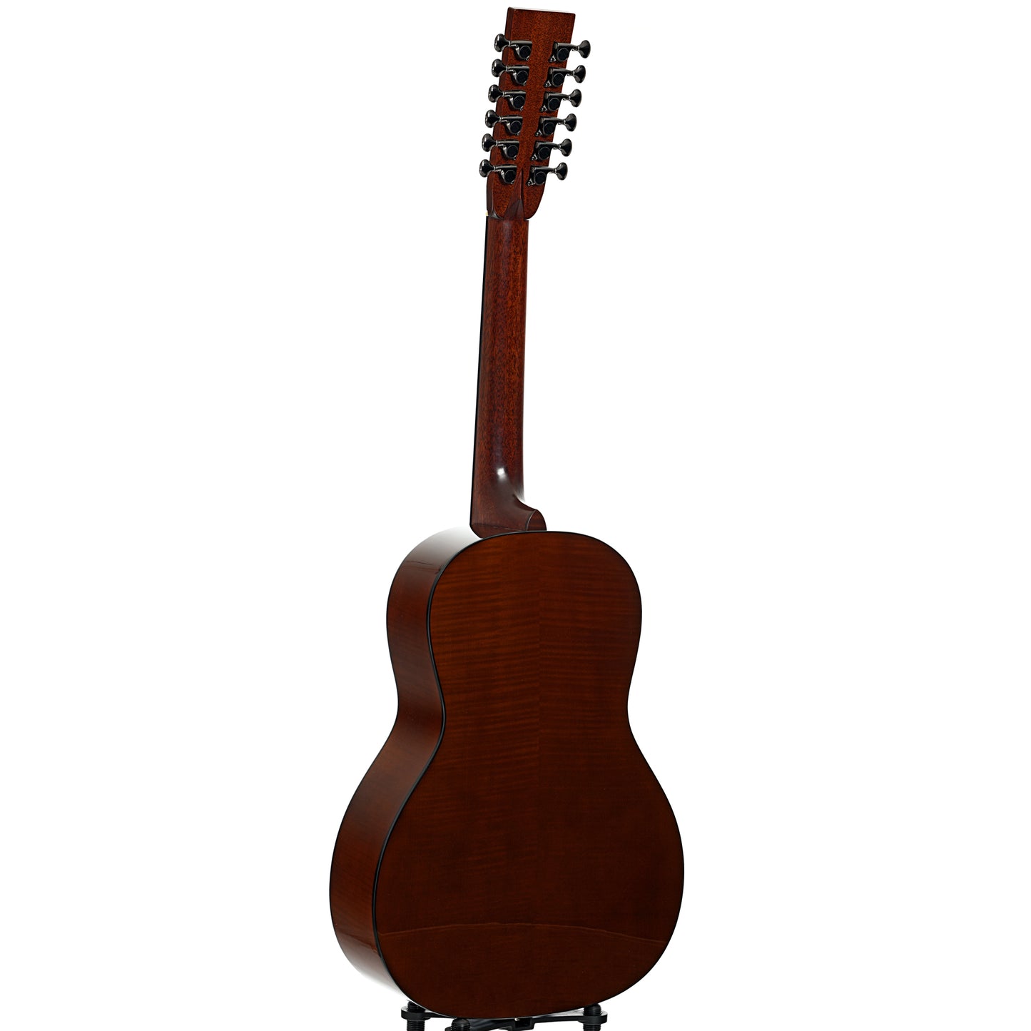 A custom order, this SCGC 00 12-string is quite unique, with a body of solid Carpathian red spruce top with scalloped X-brace, and German curly maple back and sides. It has a 12-fret mahogany neck and a 15-fret bound ebony fingerboard. Equipped with a factory stereo K&K pickup system, Gotoh 510 tuners and an ebony bridge. Lovely, lilting sounds! Santa Cruz-branded Ameritage hard shell case. Made in USA. On consignment.