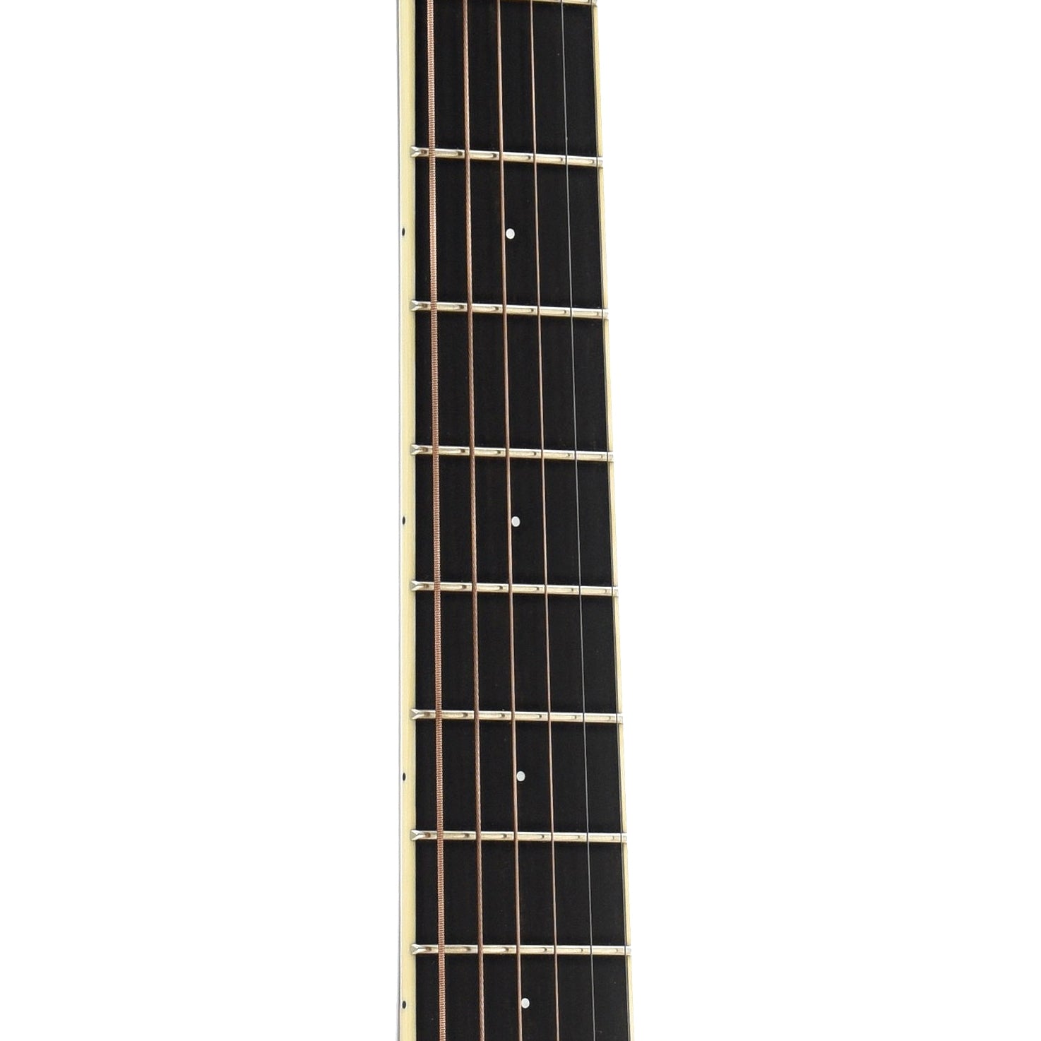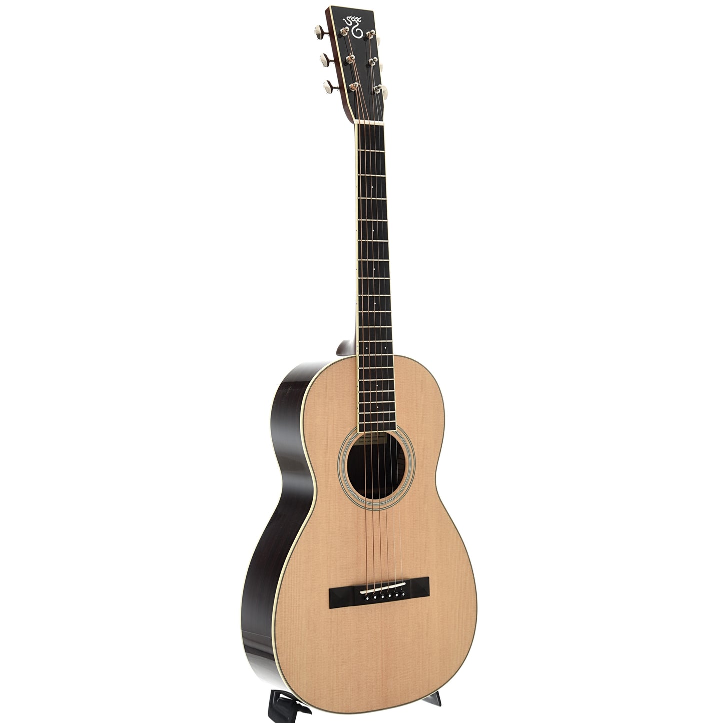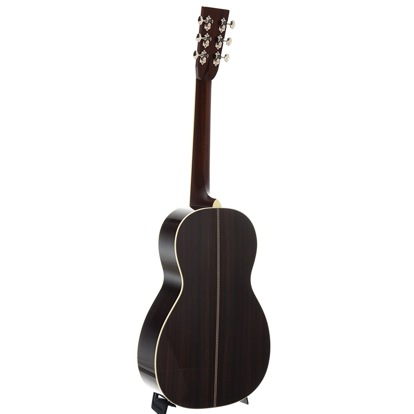 PARLOR SIZE 12-FRET - Body of Indian rosewood, Sitka spruce top with scalloped braces, ivoroid binding, black/white top trim, ebony pyramid bridge. V-shape neck joins body at 12th fret, bound ebony fingerboard (1-11/16" nut, 24" scale), small dot position inlays. Body dimensions: 18" long / 12.5" wide at lower bout / 4" deep. Santa Cruz hardshell case.