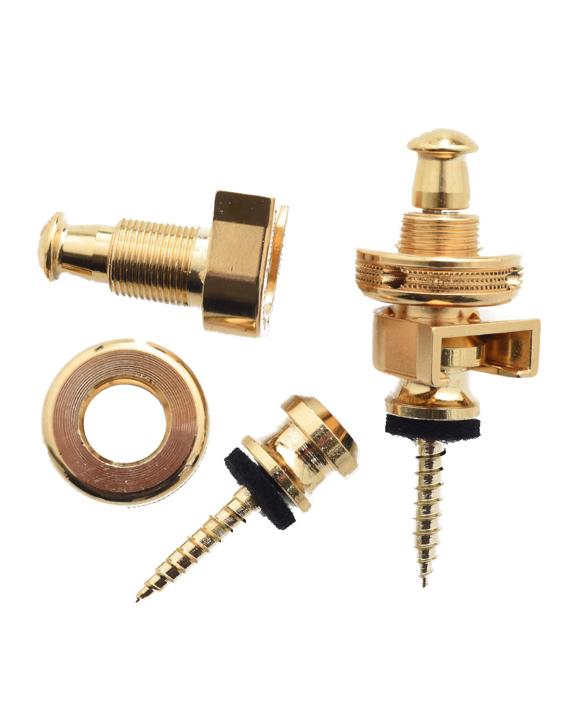 New and improved straplocks with a solid one piece strap button, new threaded lock wheel with set screw, and extended thread length. Gold
