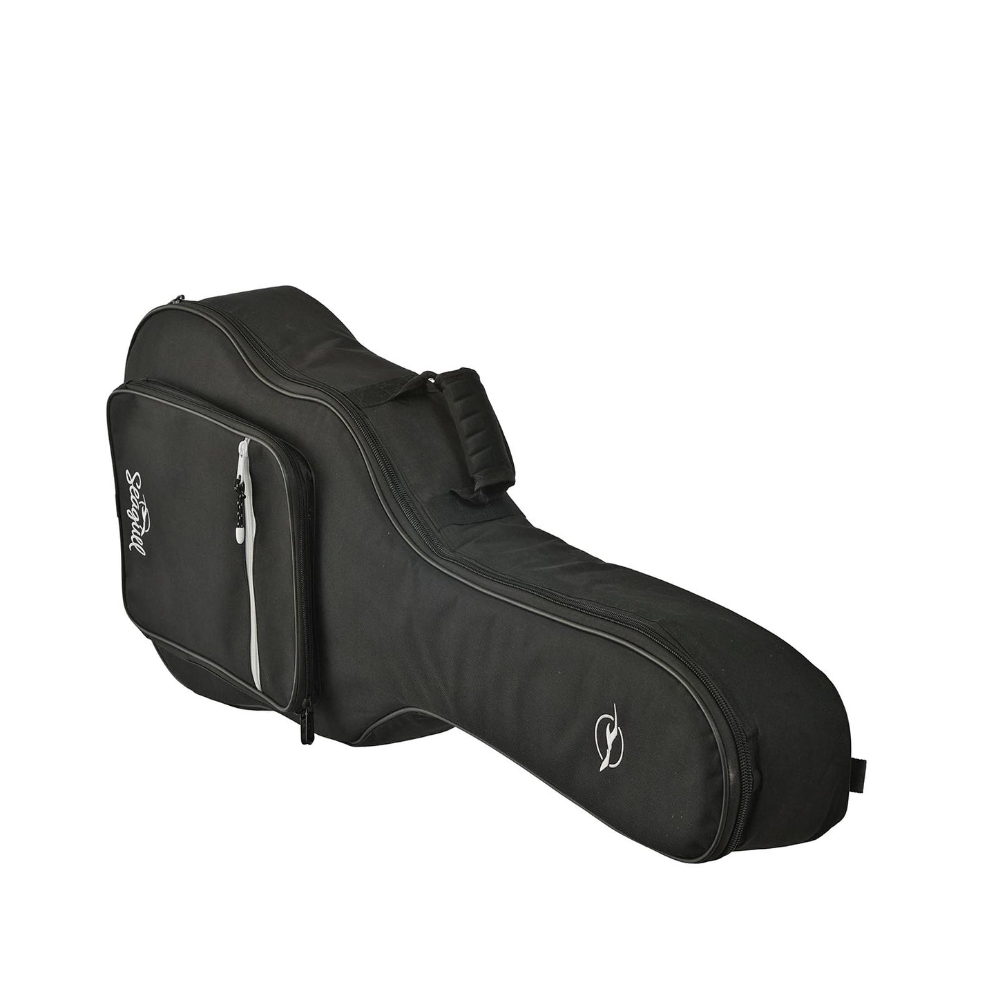Made in Canada, this Seagull impresses, with its cutaway body of solid cedar top and cherry back and sides, rosewood fingerboard and bridge. Equipped with a QIT pickup/preamp system. Good strummer! Original gigbag.