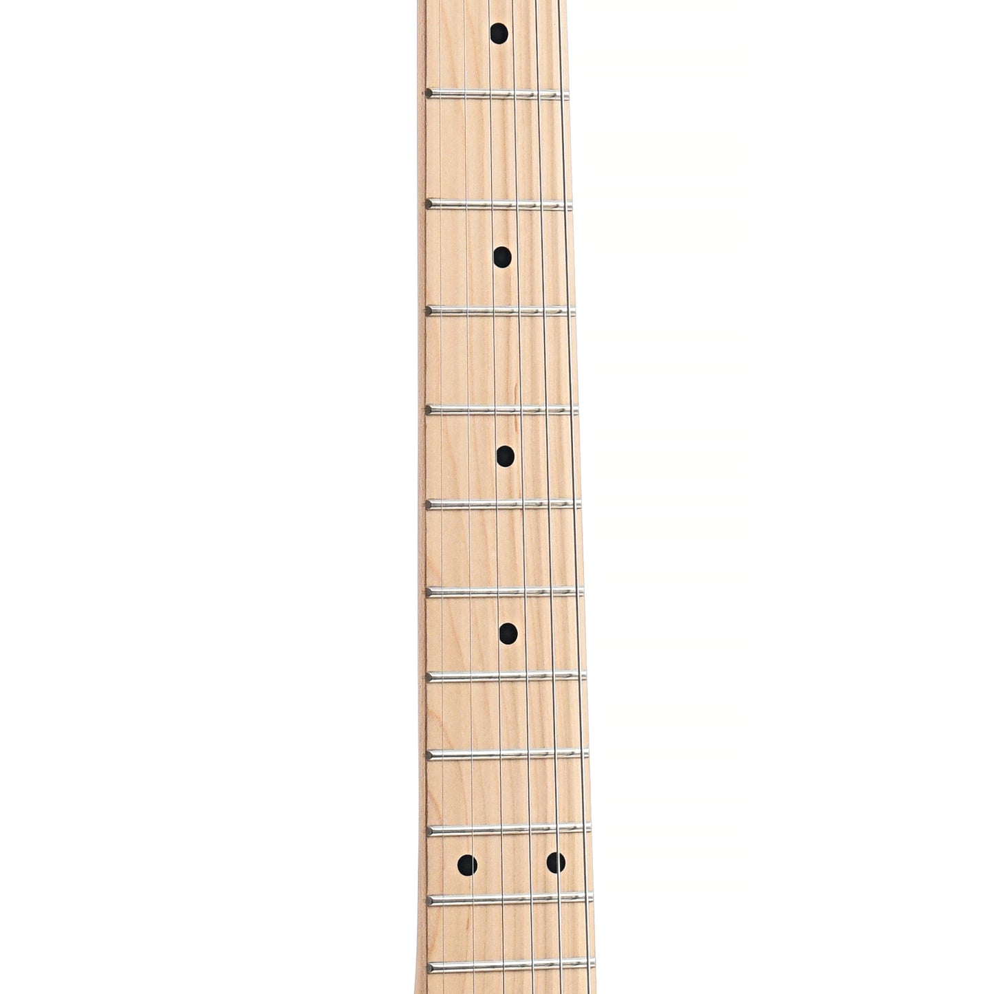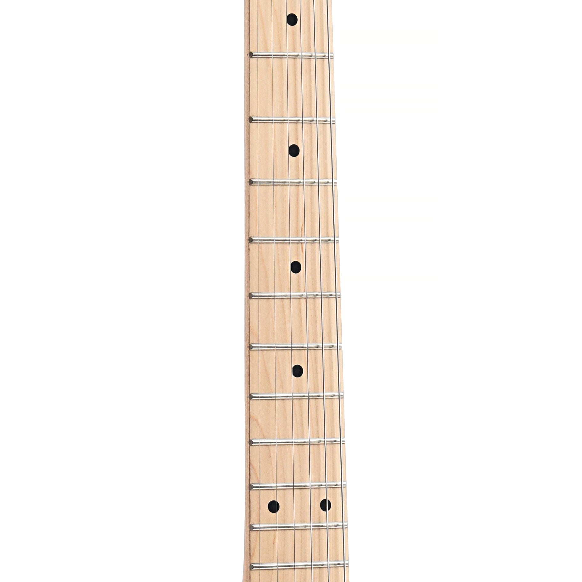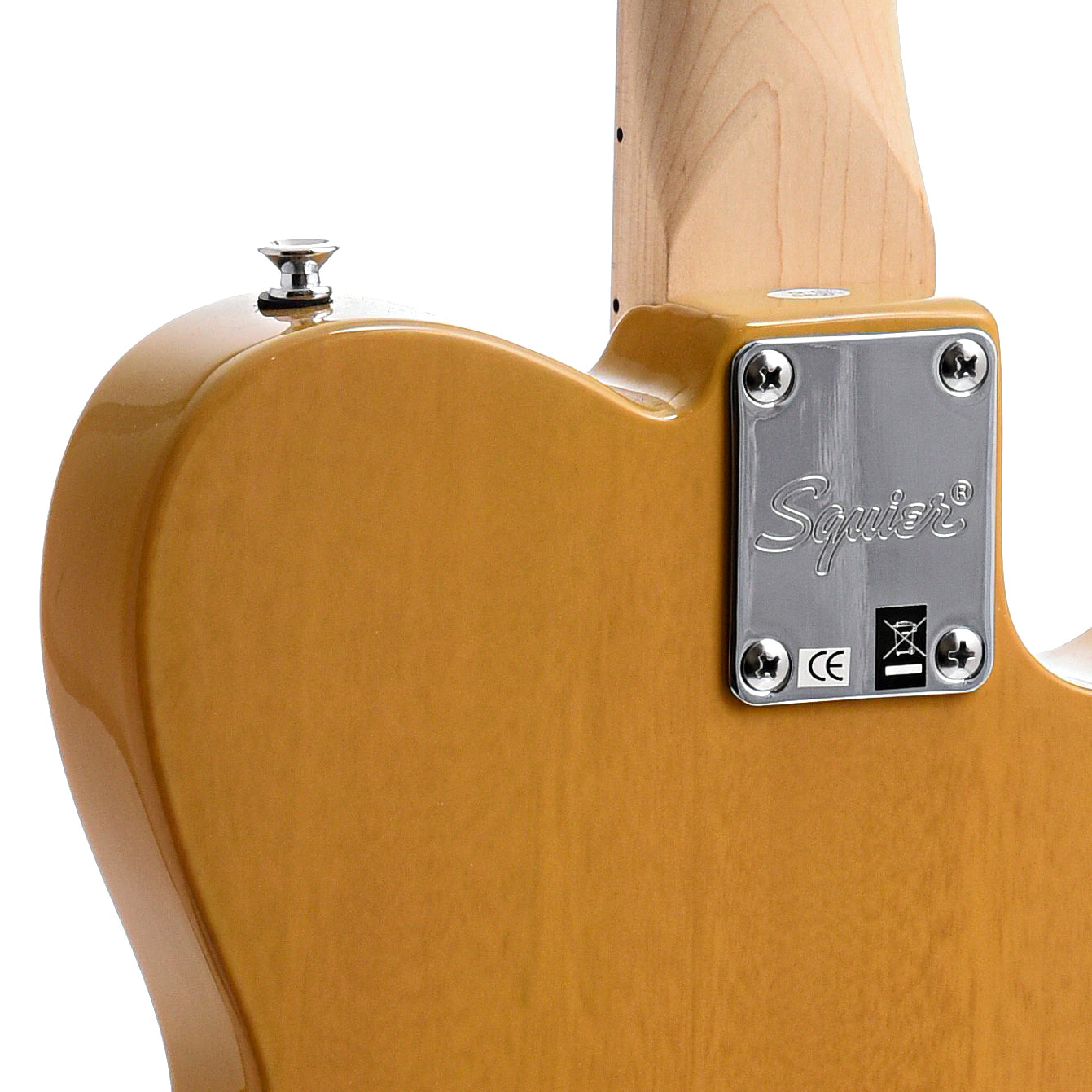 Butterscotch blonde finish, alder body, C-shape maple neck with maple fingerboard, 21 medium-jumbo frets, 9.5" radius, 1.61" nut width, 25.5" scale length, two single coil pickups, die-cast tuners, chrome hardware and a black pickguard. Less case, made in China.