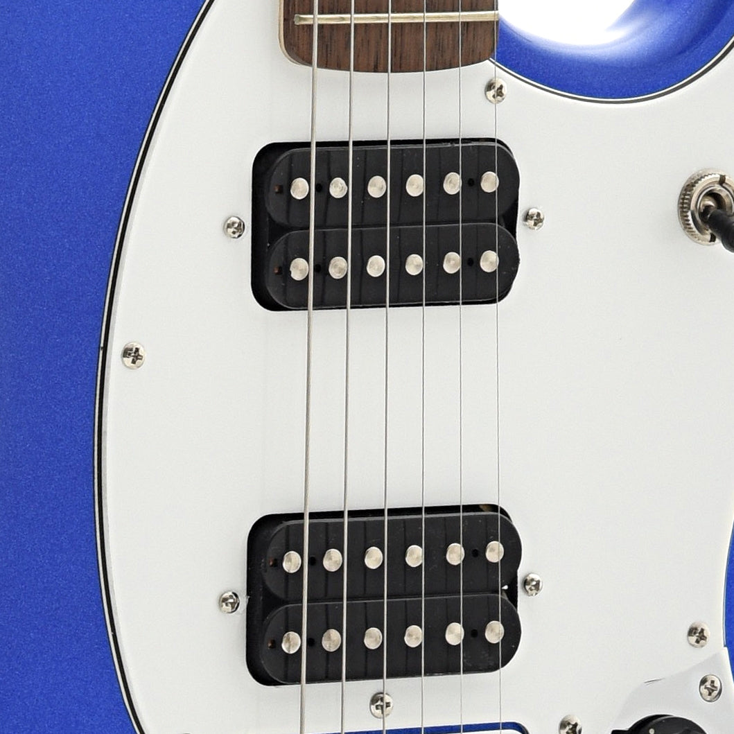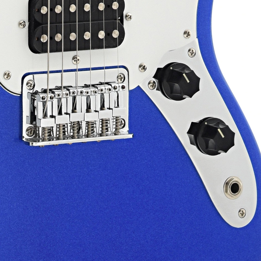 Imperial blue gloss finish, basswood body, satin finished 1-piece maple "C"-shape neck, laurel fretboard, 22 medium-jumbo frets, 24" scale length, 12" radius, 1.650" nut width, standard humbucking bridge and neck pickups, 3-way pickup selector switch, volume and tone controls, 6-saddle hardtail bridge, die-cast sealed tuners, black plastic parts, chrome hardware and a 3-ply white pickguard.
