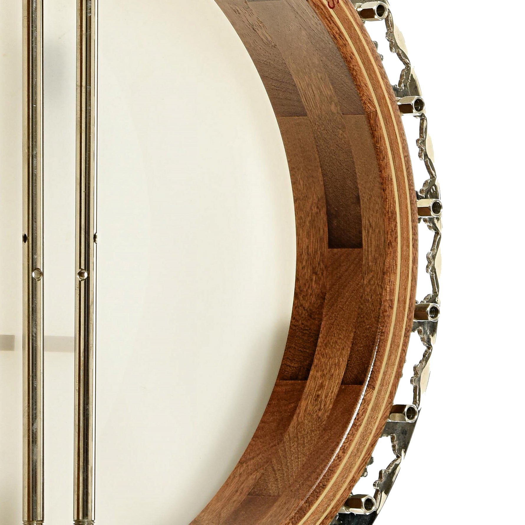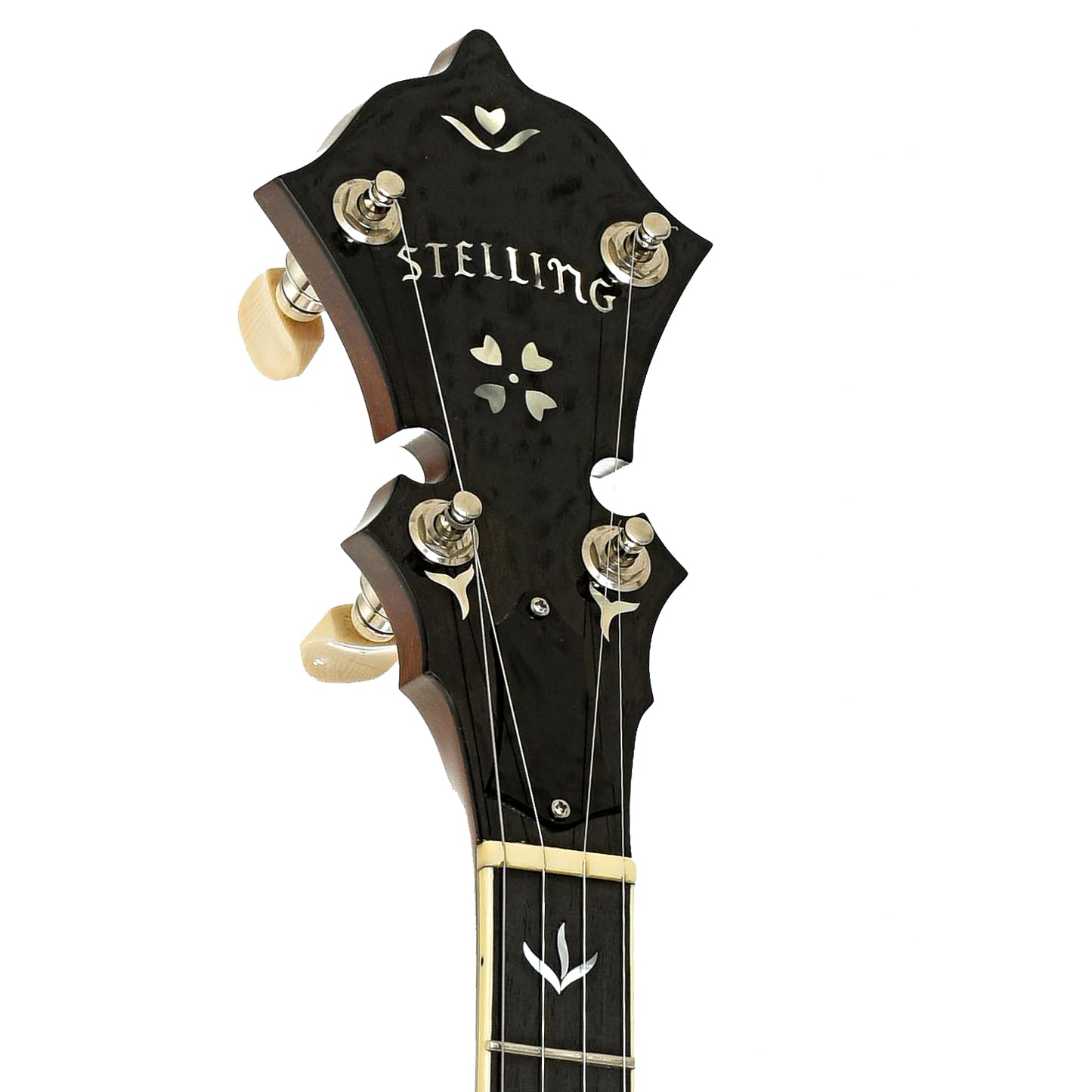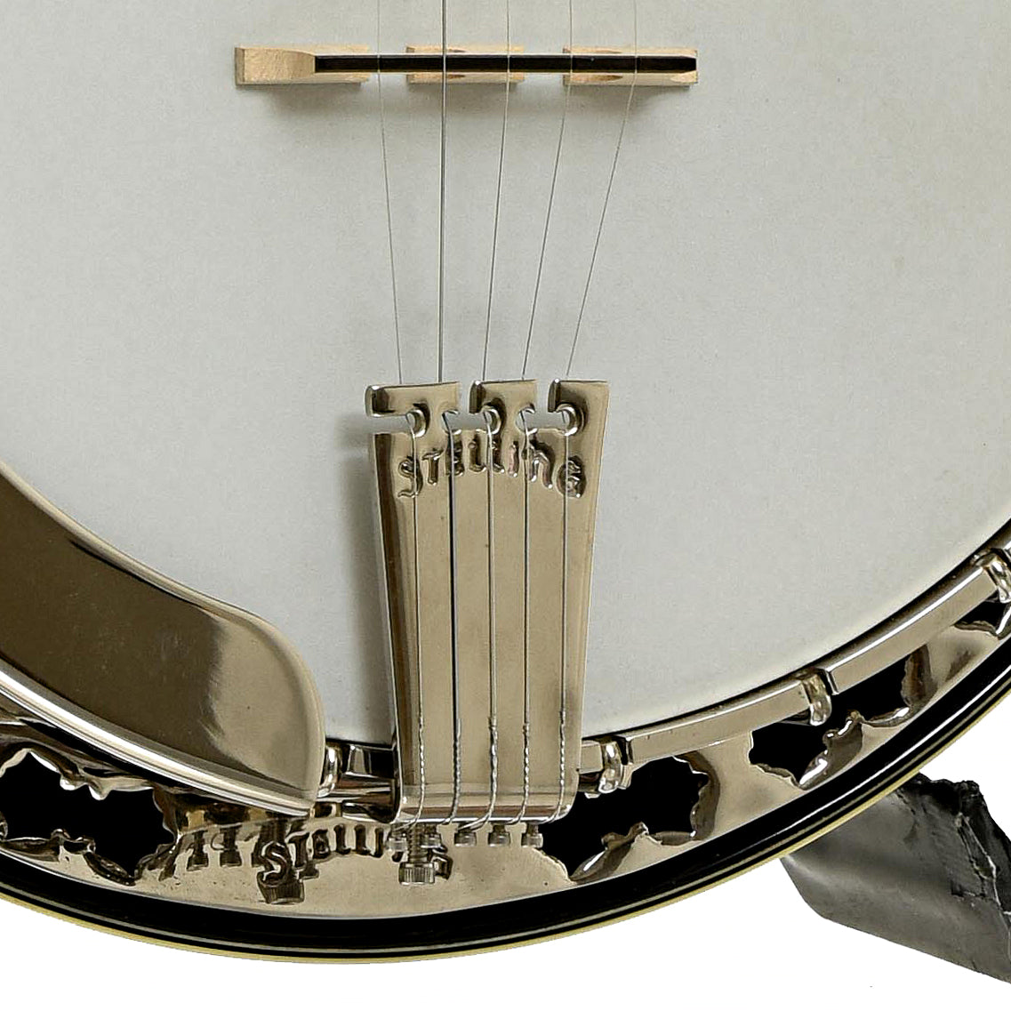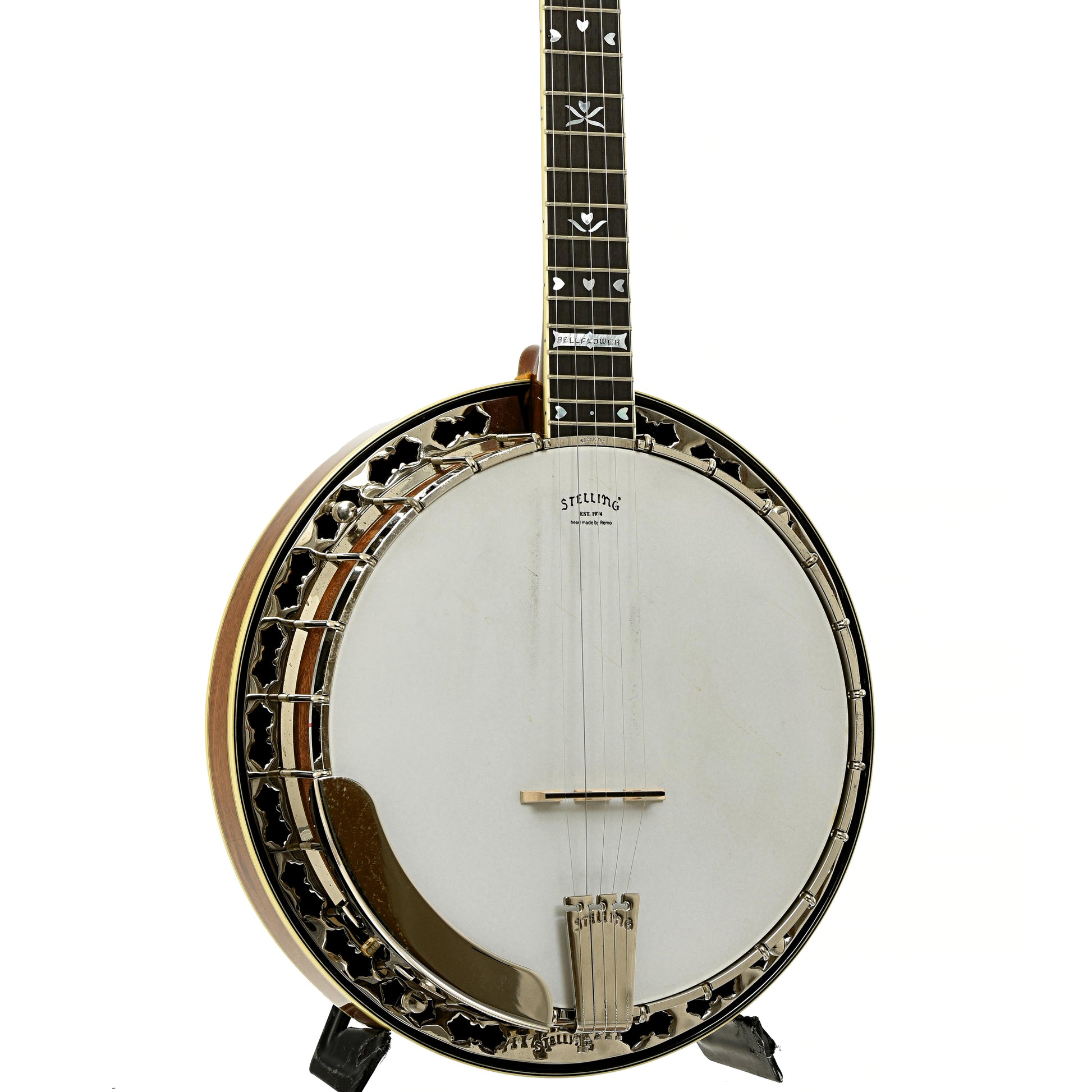From a big name in bluegrass banjos, this Bellflower features the Stelling wedge-fit tone ring, a Tony Pass Lost Timbre block maple rim, a walnut resonator and neck, and an ebony fingerboard. Pretty appointments of pearl floral inlays and ivoroid binding. Huge volume and tone! Original hard shell case. Made in USA.