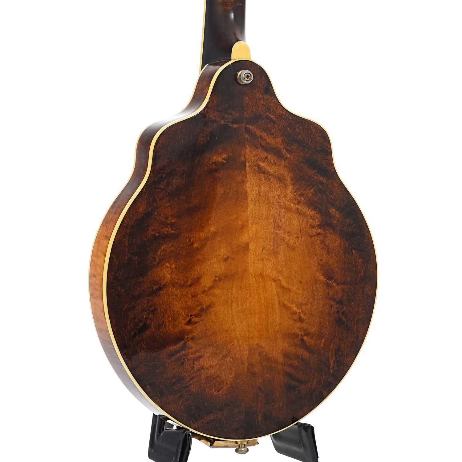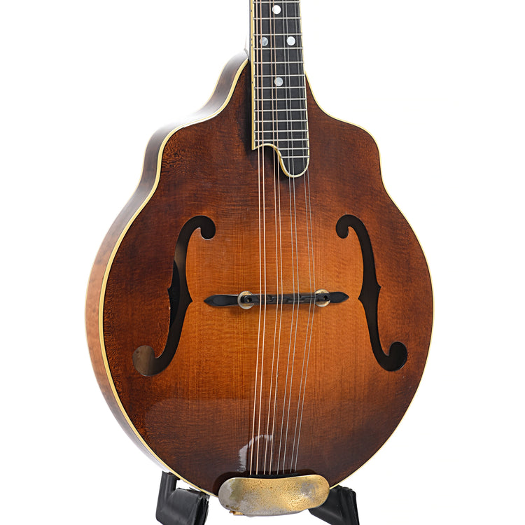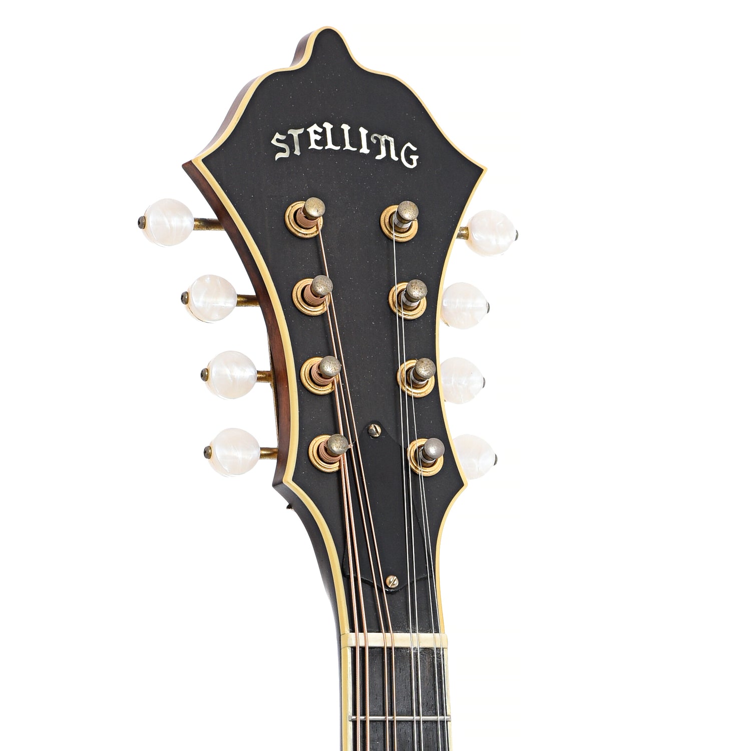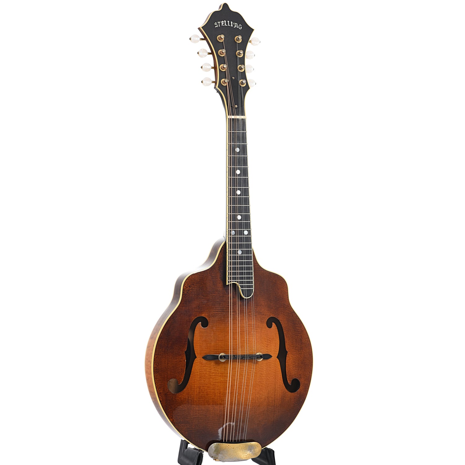 This intriguing Stelling mandolin has a modified A-style body with double bump shoulders, large f-holes, and a sunburst finish. It features a bound carved spruce top and maple back and sides. Equipped with gold hardware and 4-on-a-plate tuners with pearloid buttons. Excellent, distinctive tone and playability! Original hard shell case. Made in USA.