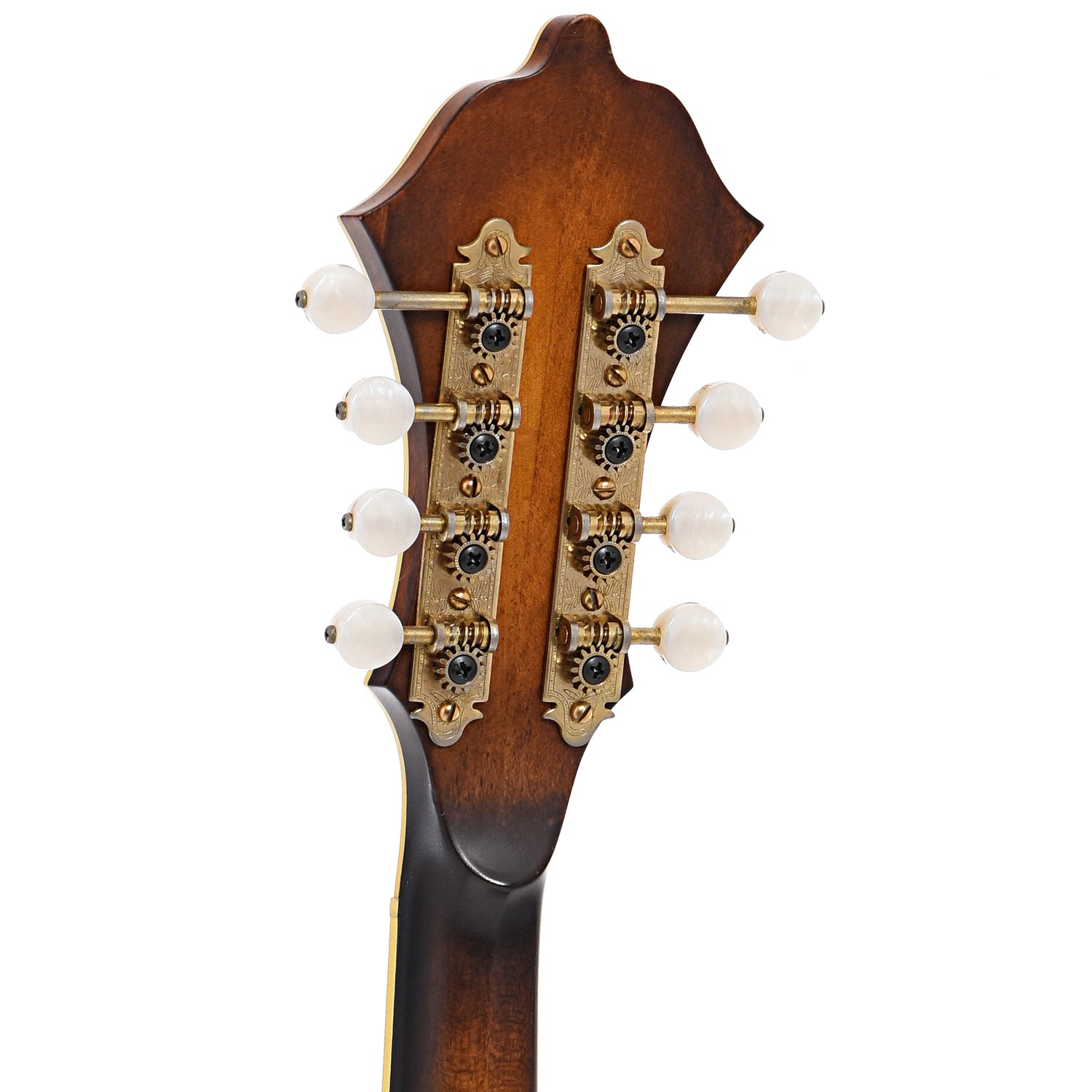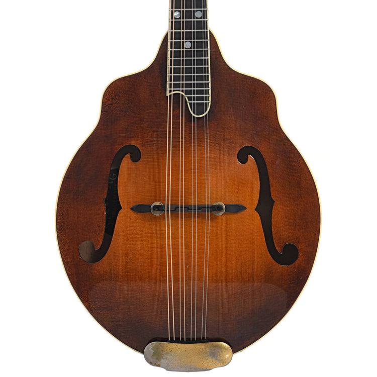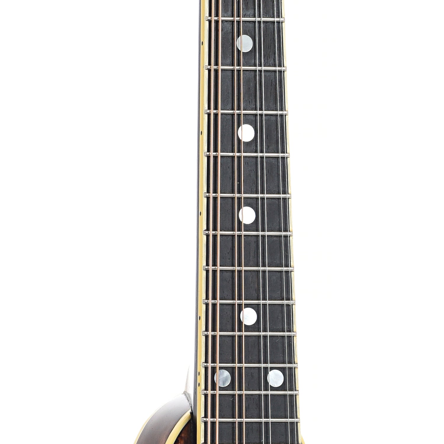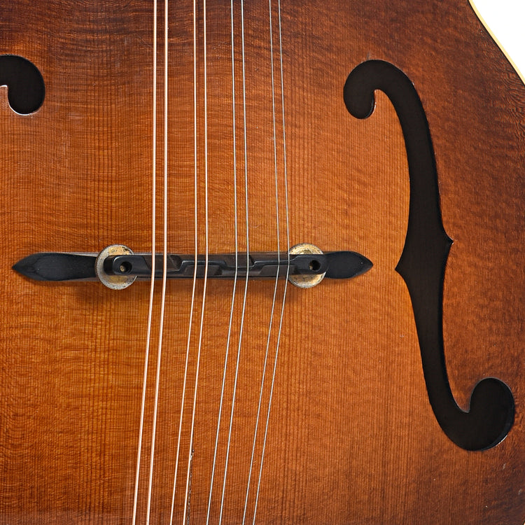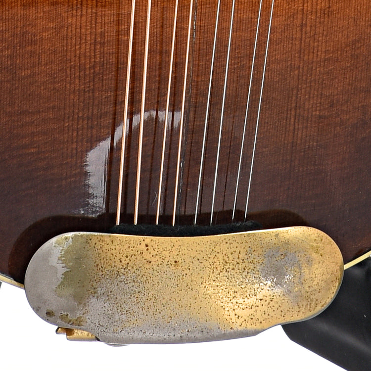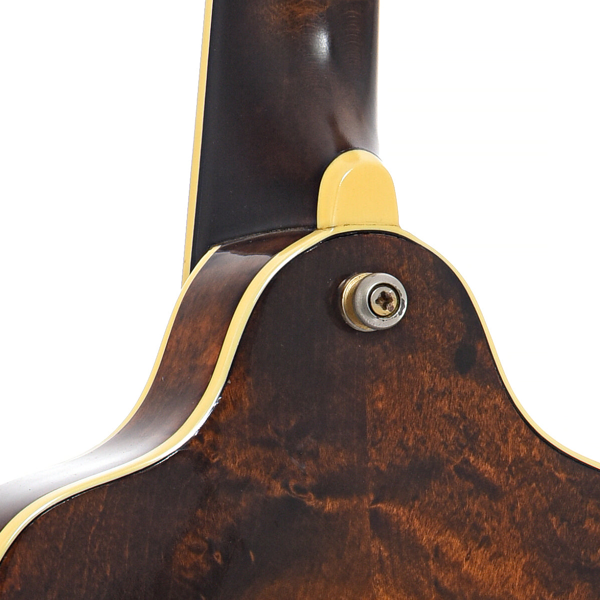 This intriguing Stelling mandolin has a modified A-style body with double bump shoulders, large f-holes, and a sunburst finish. It features a bound carved spruce top and maple back and sides. Equipped with gold hardware and 4-on-a-plate tuners with pearloid buttons. Excellent, distinctive tone and playability! Original hard shell case. Made in USA.
