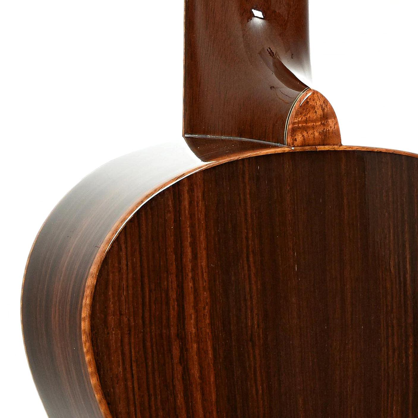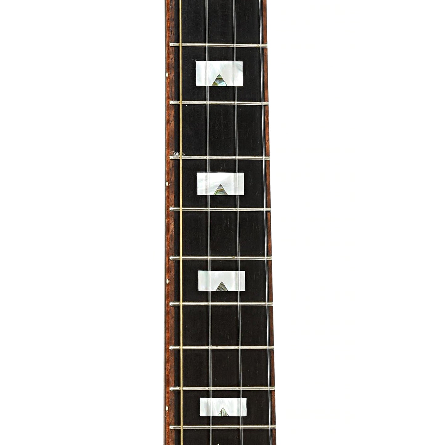 - Ebony radiused fingerboard with pearl/abalone block inlay