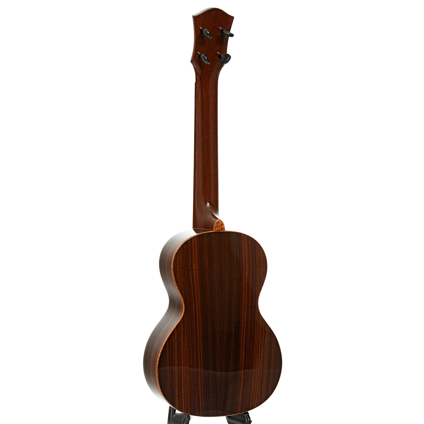 An excellent build with stunning looks, this Talsma tenor uke has premium features of figured redwood top, figured koa binding, rosewood back and sides, ebony bridge and radiused fingerboard. Appointments are pearl/abalone block and shield inlays, with Pegheds tuners. Tweed hard shell case. Made in USA. On consignment.