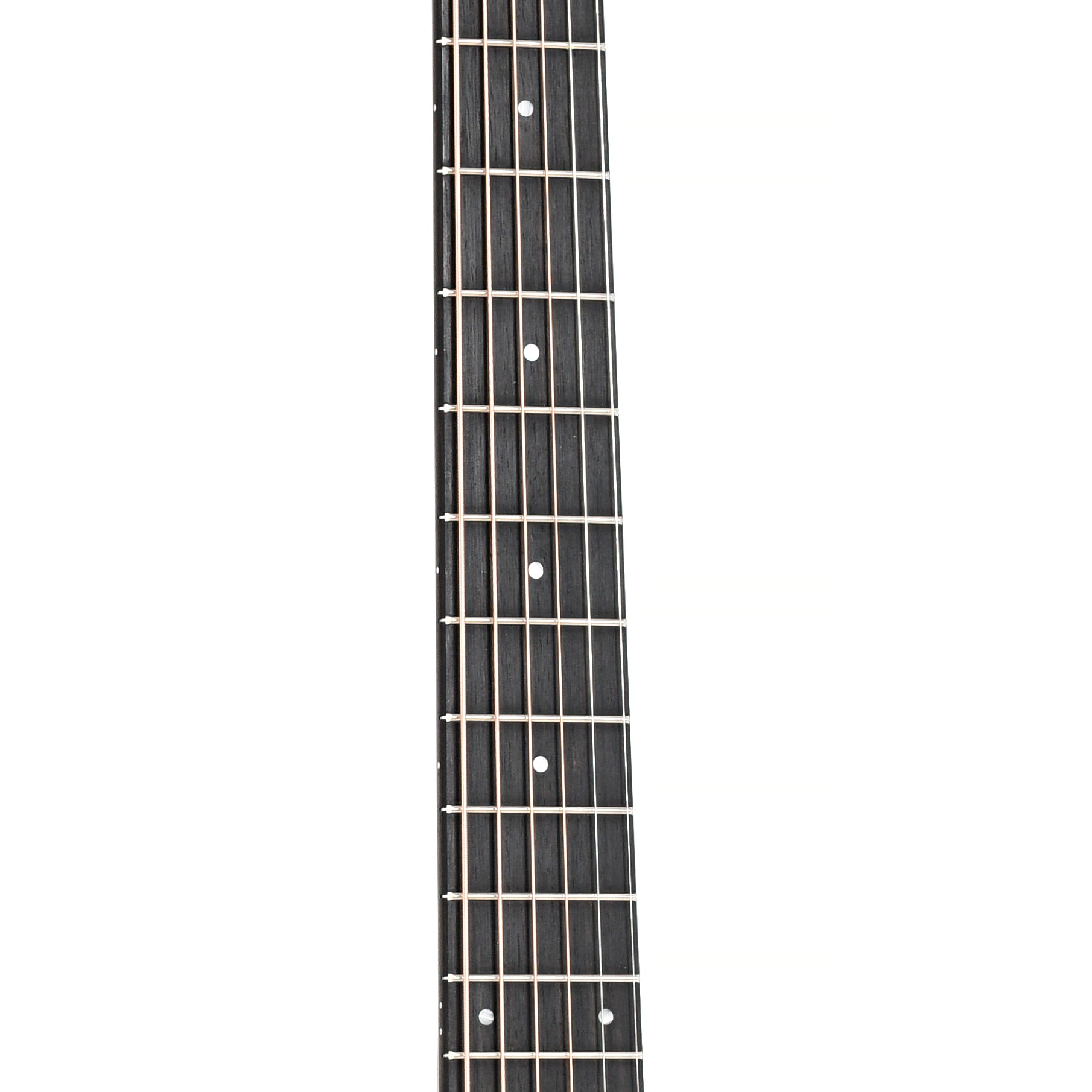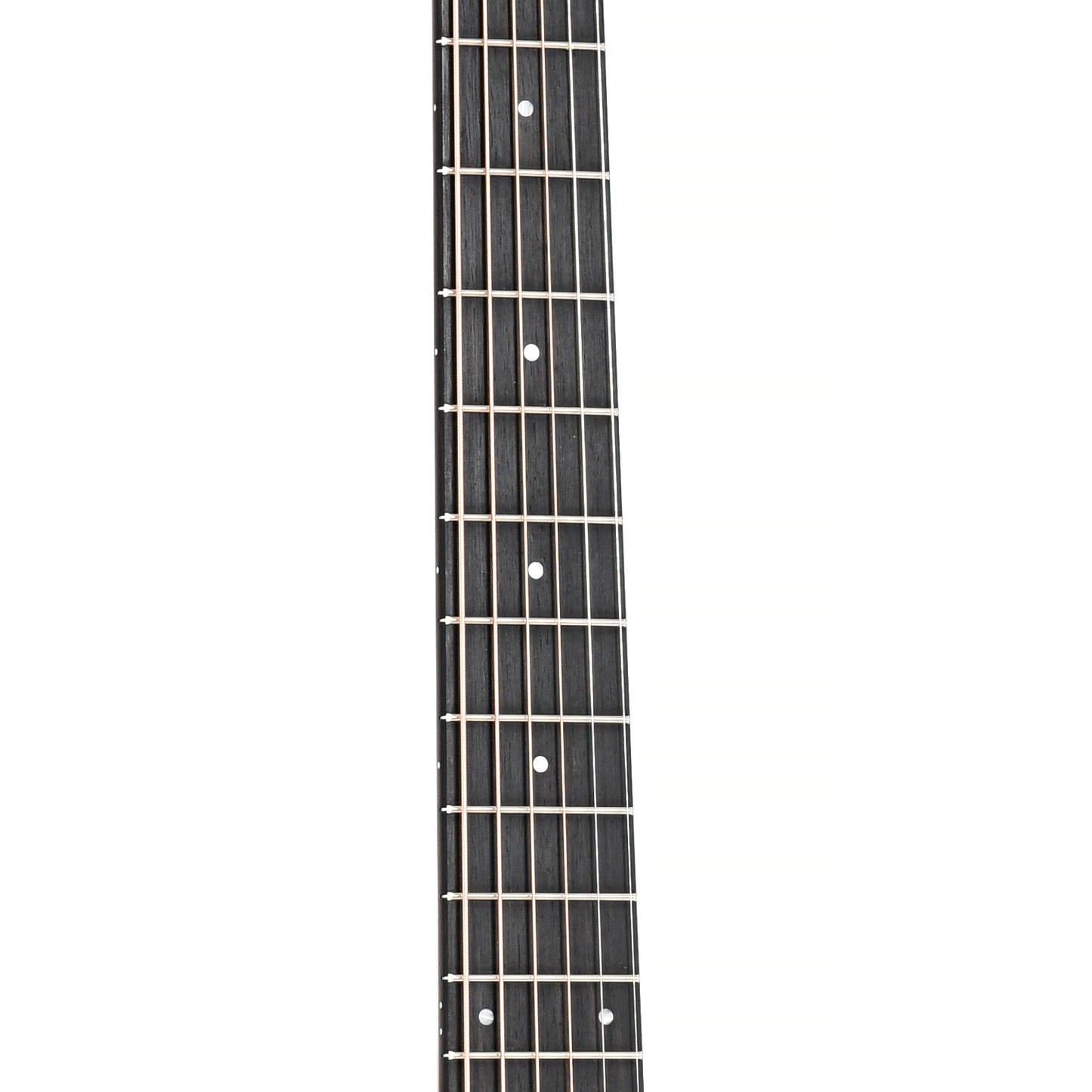 Dreadnought sized, solid Sitka spruce top, laminated sapele back and sides, mahogany armrest, 24-7/8" scale length, 1-11/16" nut width, 3-ring Baltic Birch rosette, sapele neck with ebony fingerboard, 4mm dot Italian acrylic inlays, chrome tuners, Tusq nut, Micarta saddle, gigbag included.