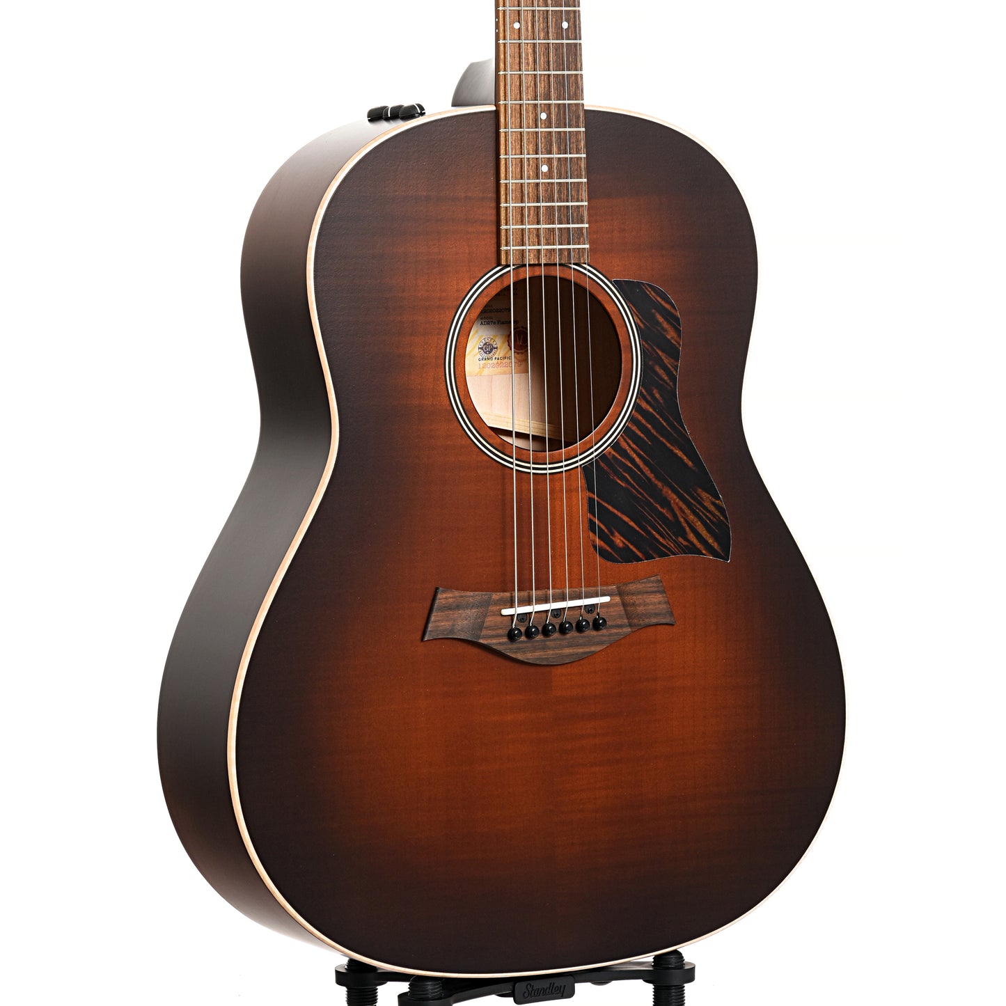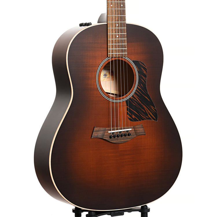 Taylor's AD27e Flametop brings a new sonic flavor with an earthy, broken-in character in a dreadnought-style guitar. It boasts back, sides and top of solid Big Leaf maple, with their V-Class bracing under the hood. The result is an appealingly rustic sound that's totally distinct from the pristine, vibrant quality that many players associate with Taylor.