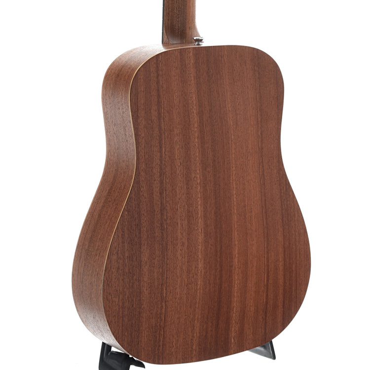 3/4 size dreadnought body, solid mahogany top, laminated sapele back and sides, arched back, mahogany neck, ebony fingerboard and bridge, satin finish, single ring rosette, 1 11/16" neck width, chrome tuners. Made in Mexico.