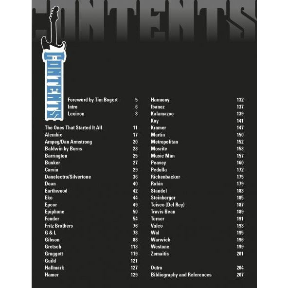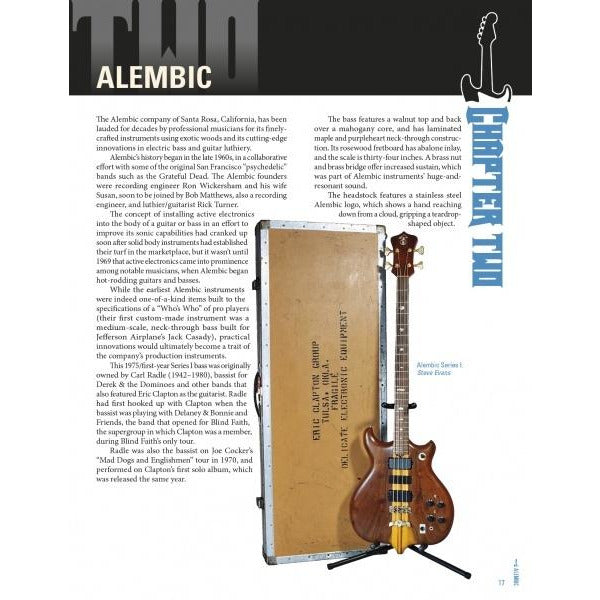 Profiles more than 100 historic and unique electric bass models from such makers as Alembic, Danelectro, Fender, Gibson, Gretsch, Guild, Hamer, Kramer, Rickenbacker, and many others. Rare and legendary instruments, from the earliest attempts at amplified basses in the mid-1930s to the cutting-edge instruments of today, are presented in more than 250 color and period photos. The main feature is exclusive coverage of historic and one-of-a-kind basses owned and played by such famed musicians as: Bill Black (Elvis Presley), Tim Bogert (Vanilla Fudge), Mark Egan (Pat Metheny Group), John Entwistle (The Who), Paul Goddard (Atlanta Rhythm Section), Bruce Hall (REO Speedwagon), Greg Lake (Emerson, Lake & Palmer), Benjamin Orr (The Cars), Tom Petersson (Cheap Trick), Carl Radle (Derek and the Dominos), Gene Simmons (Kiss), Steve Wariner, and others. Hardcover. 208 pp.