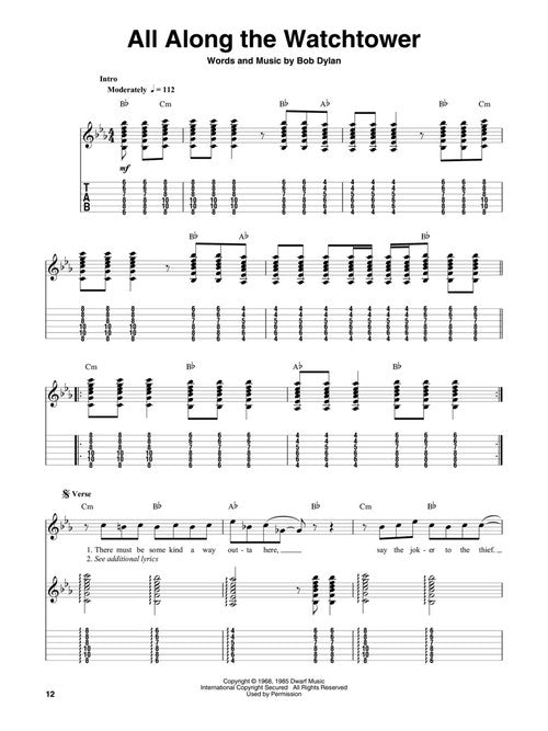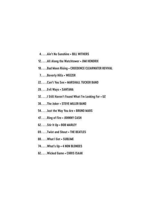 Book with online audio. Learn to play songs faster than ever before with accurate, easy-to-read guitar tab and professional, customizable play-along audio for 15 songs. The interactive, online audio interface includes tempo/pitch control, looping, buttons to turn instruments on or off, and guitar tab with follow-along marker. The tracks can be streamed or downloaded and played offline. 15 favorites: Ain't No Sunshine, All Along the Watchtower, Bad Moon Rising, Beverly Hills, Can't You See, Evil Ways, I Still Haven't Found What I'm Looking For, The Joker, Just the Way You Are, Ring of Fire, Stir It Up, Twist and Shout, What I Got, What's Up and Wicked Game. Note/tab. 94 pp.