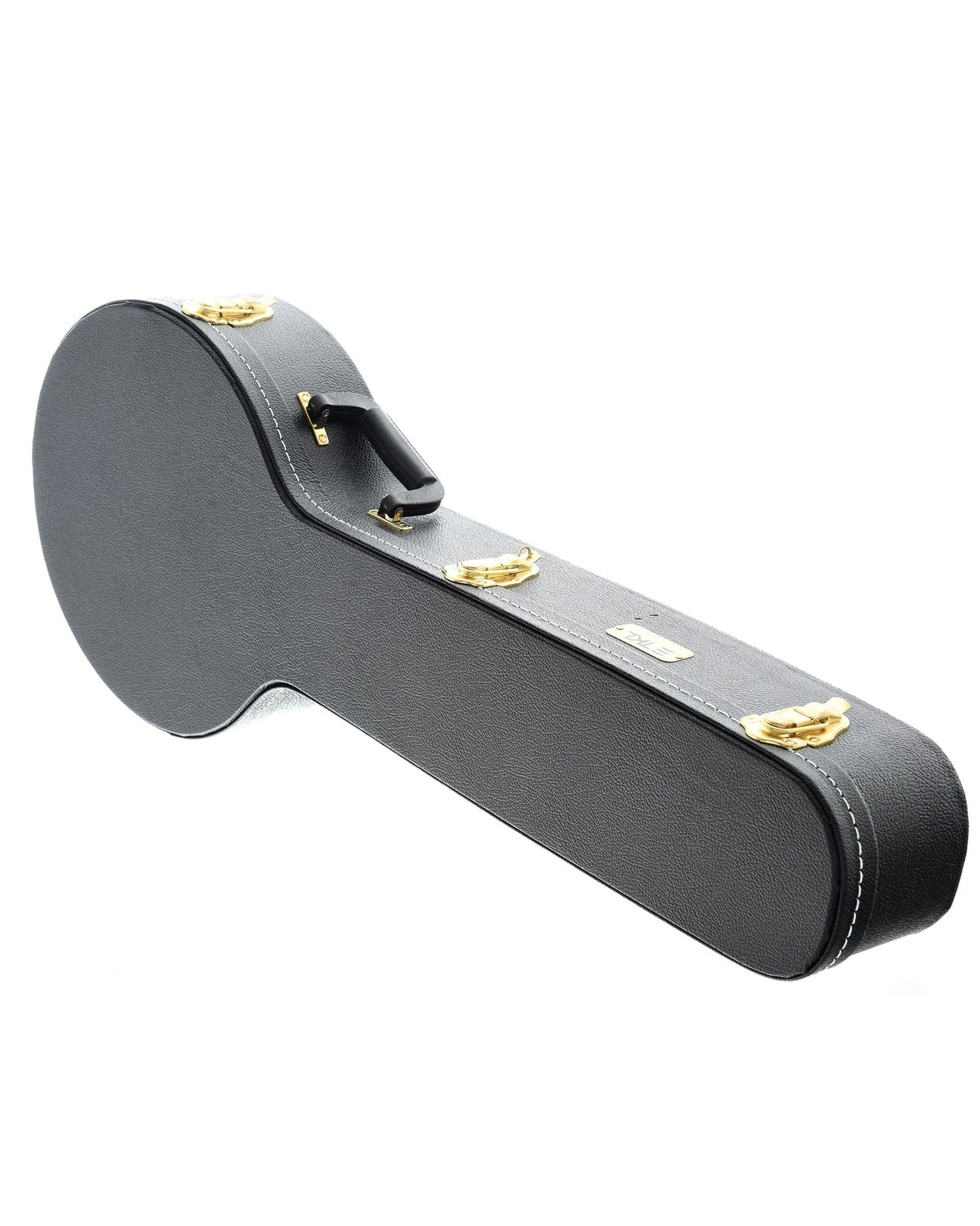 Premier series flat top case. Shaped wooden shell, black leather-look covering, plush padded interior. Fits openback tenor banjos with 11" rim diameters.