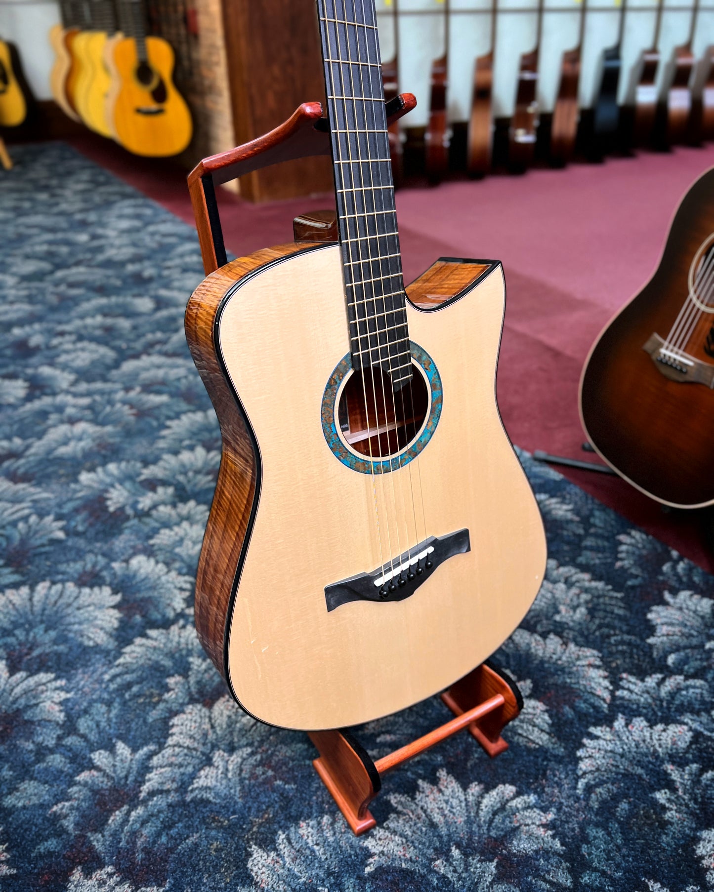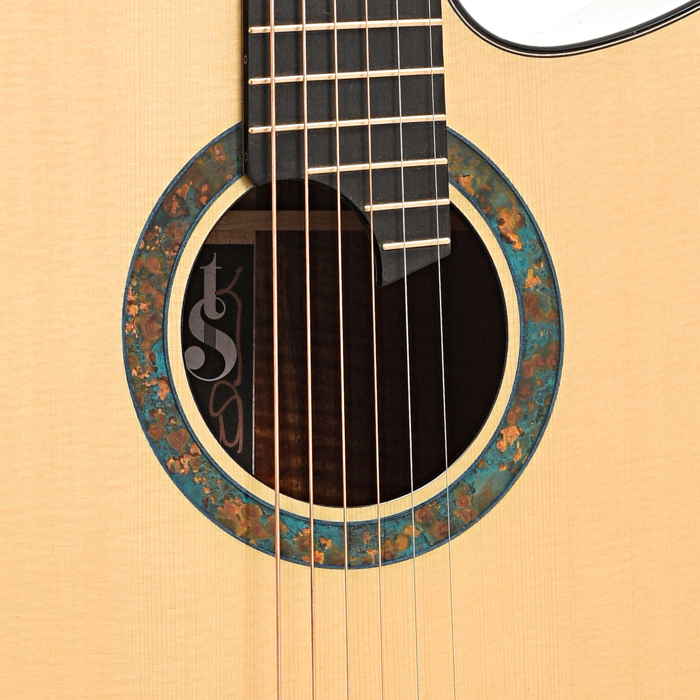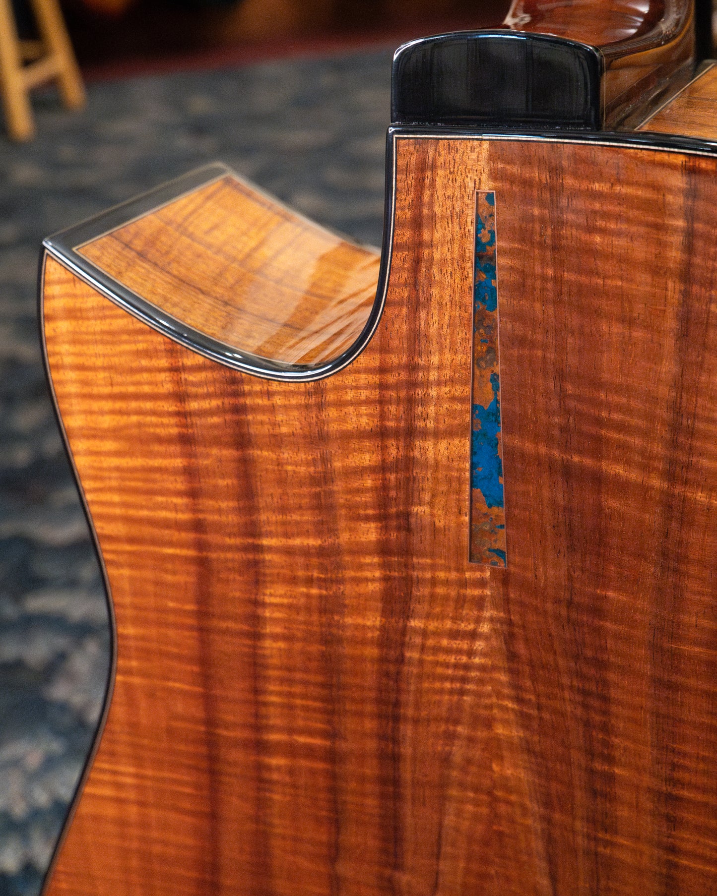 • Headstock overlay features blue Patinated Copper inlay